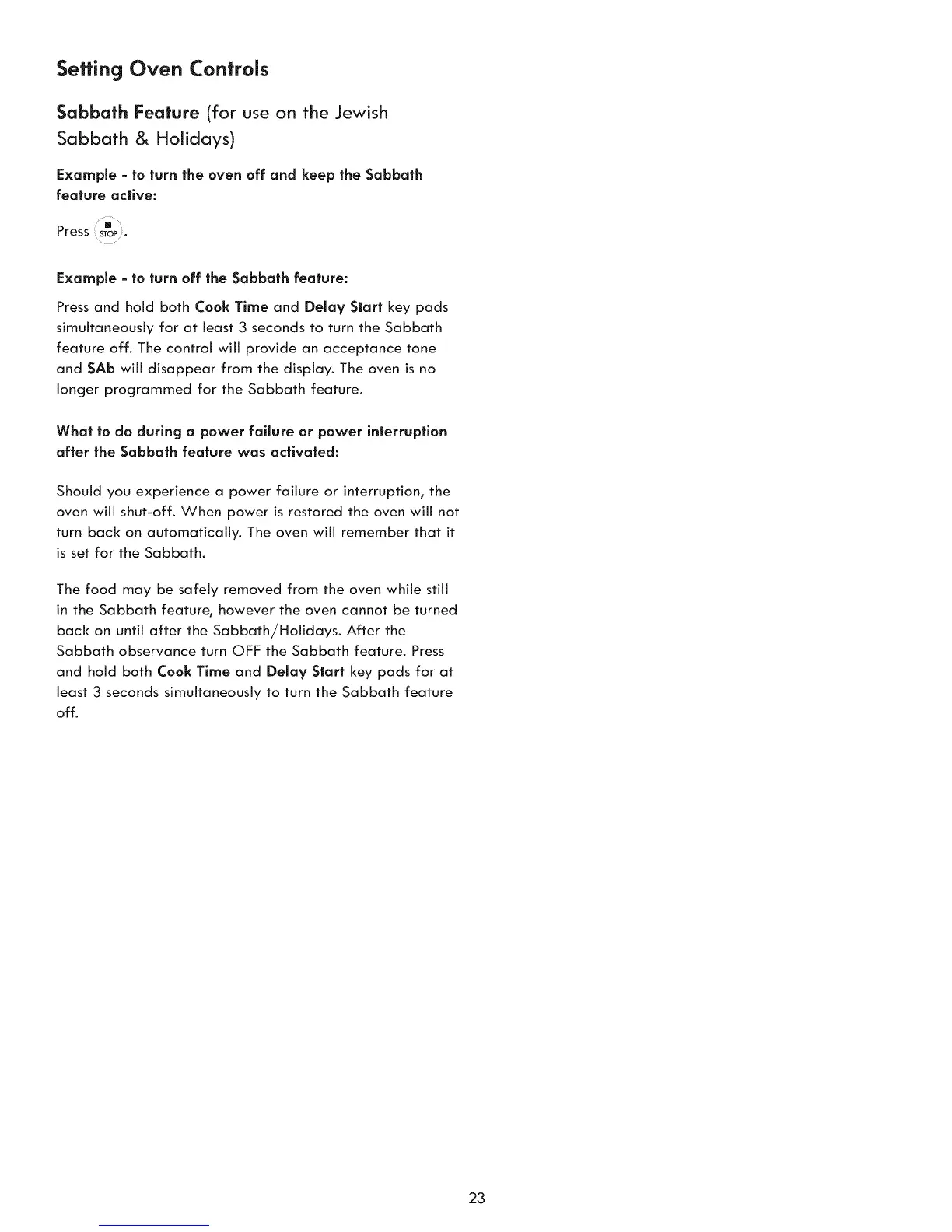 least 3 seconds simuMtaneously to turn the Sabbath feature
