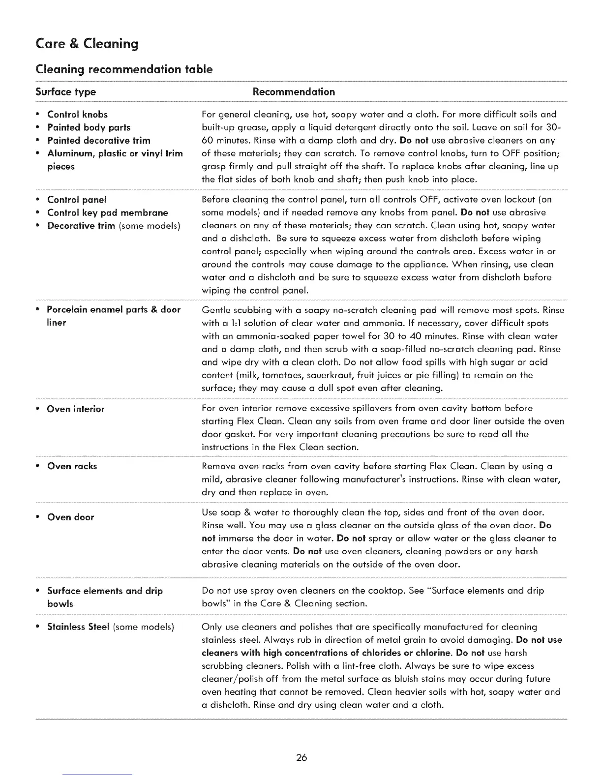 " Stainless Steel (some models) Only use cleaners and polishes that are specifically manufactured for cleaning