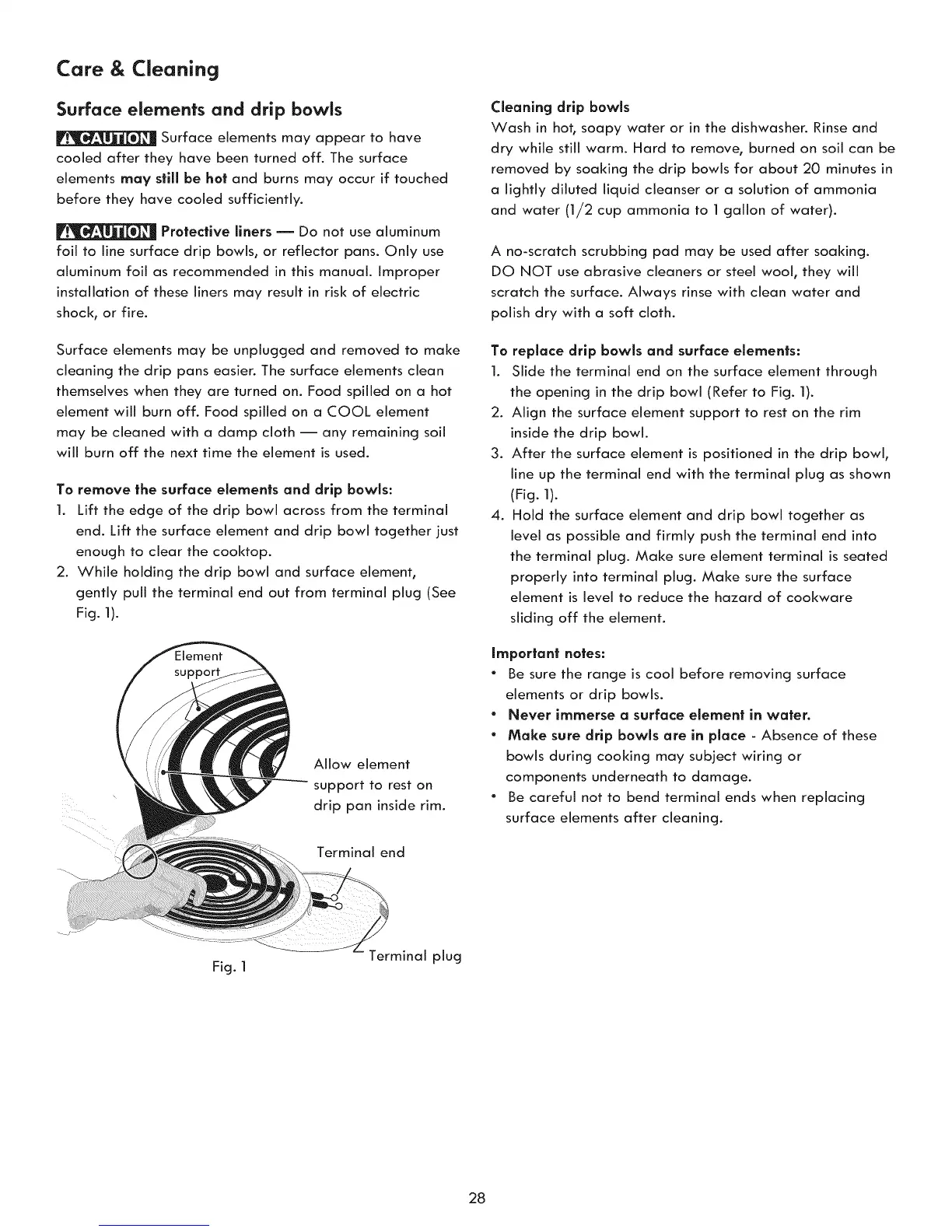 foil to line surface drip bowls, or reflector pans. Only use