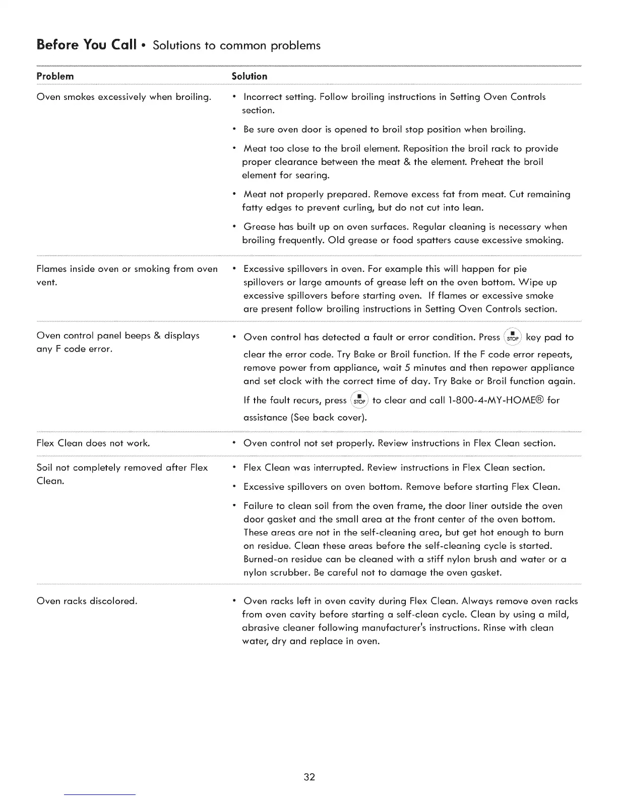 Oven smokes excessively when broiling. " Incorrect setting. Follow broiling instructions in Setting Oven Controls