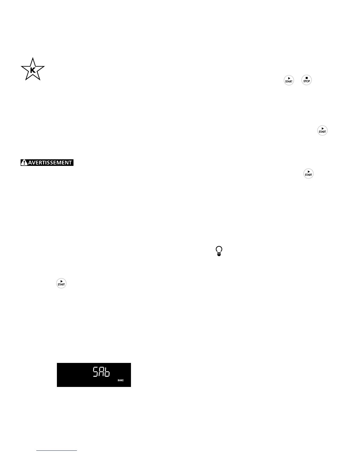 • Si la lampe du four s’avère nécessaire lors du sabbat, appuyez