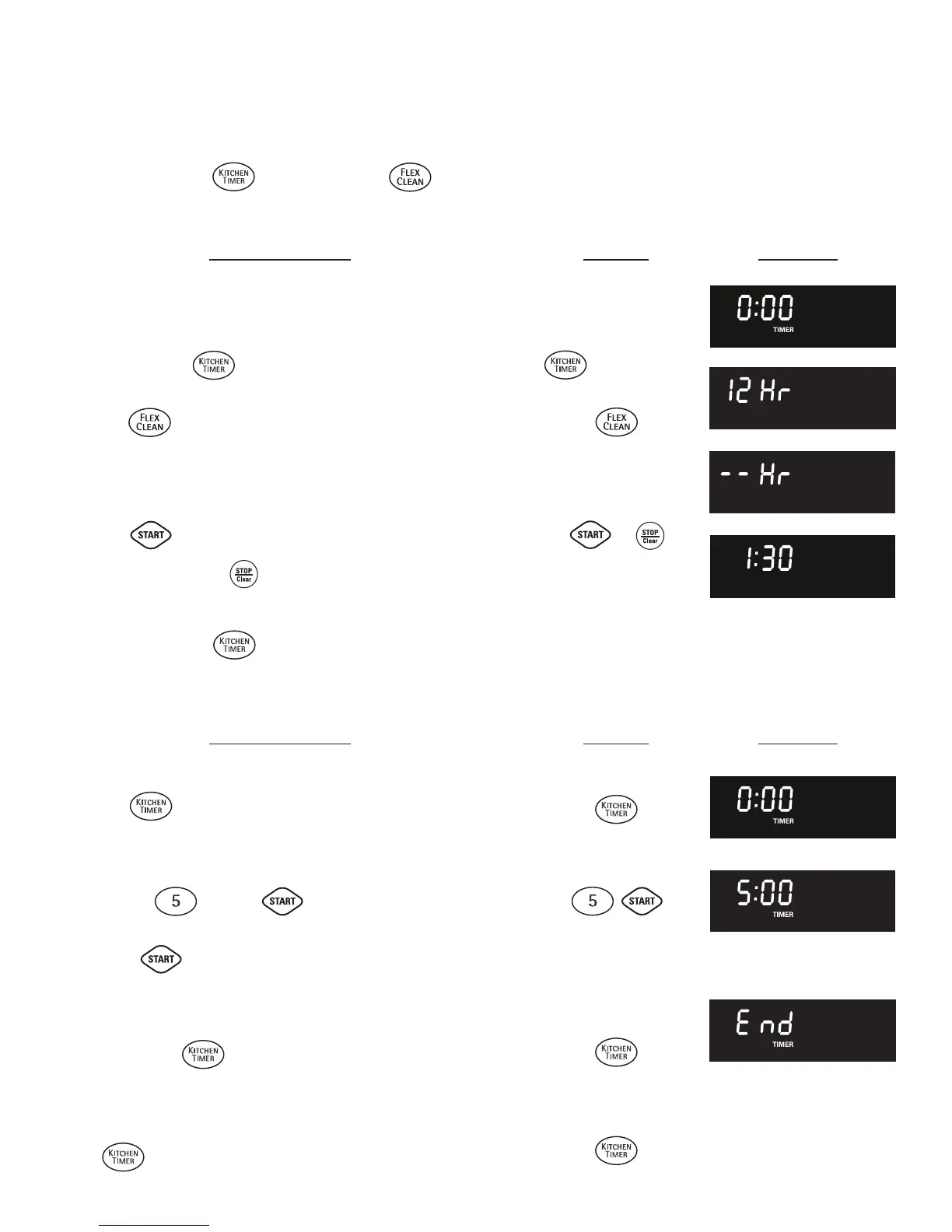 The KITCHEN TIMER and FLEX CLEAN pads control the Continuous Bake or 12 Hour Energy Saving