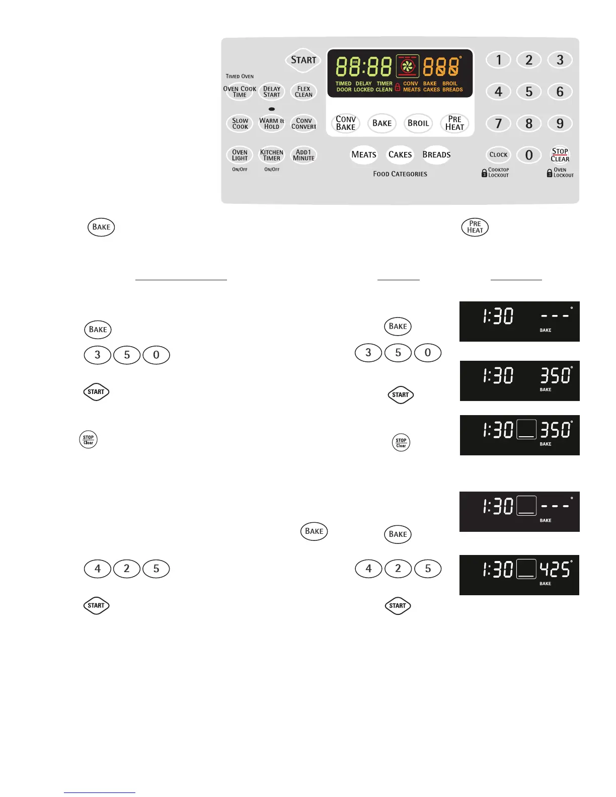 3. Press . "BAKE" and "425°" will appear in the display (See