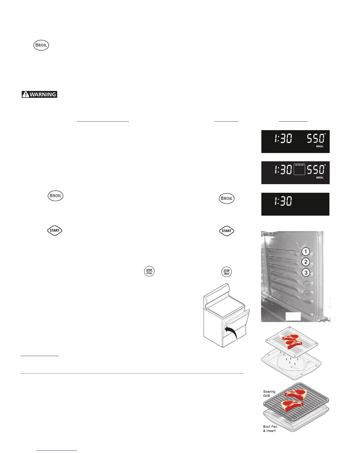 5. Press . The oven will begin to broil. "BROIL" and "550°"