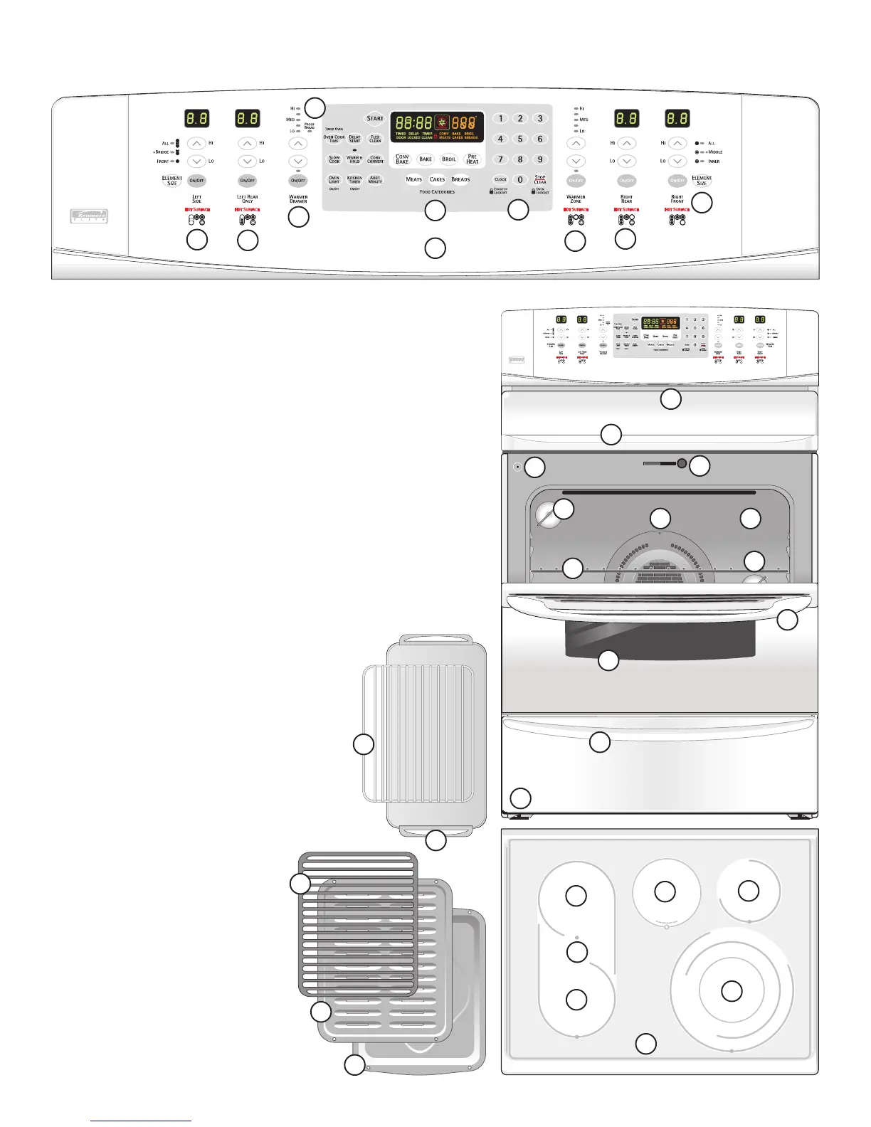 5. Warm & Ready Drawer Control & Indicator Light.