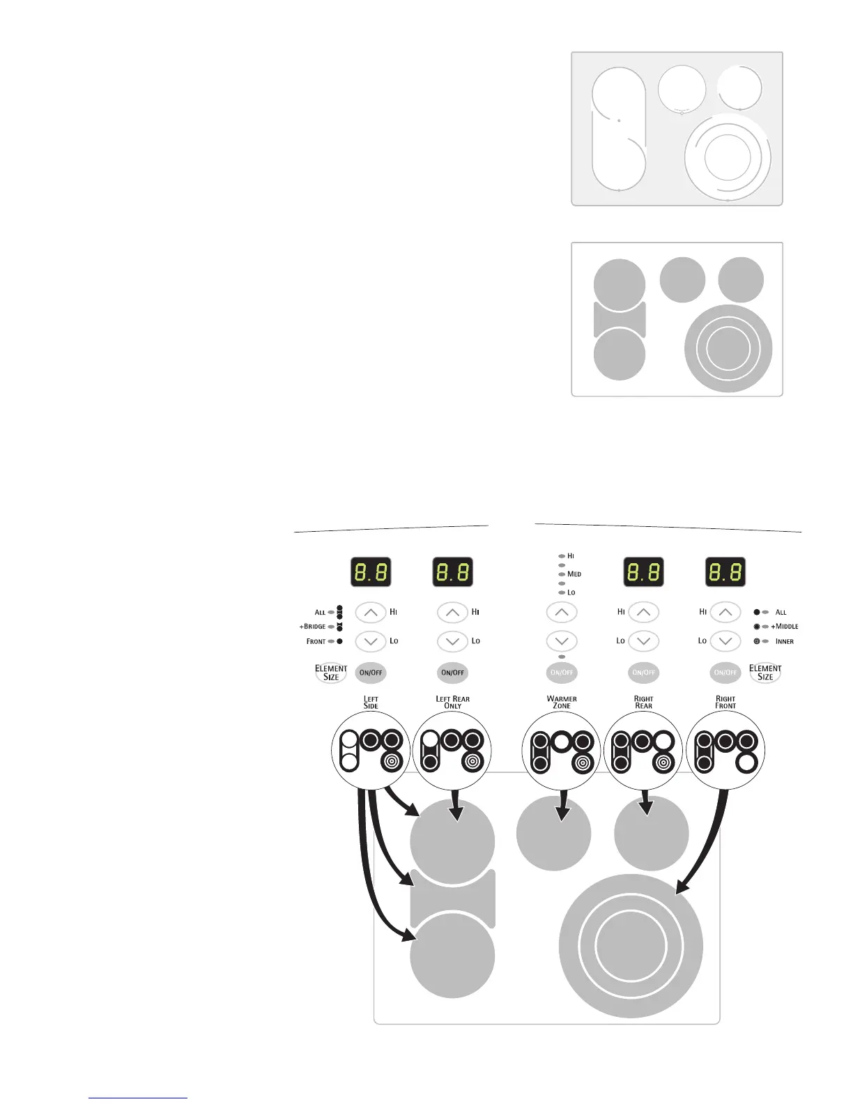 NOTE: Radiant elements have a limiter that allows the element to cycle on and off, even at the HI setting. This helps to