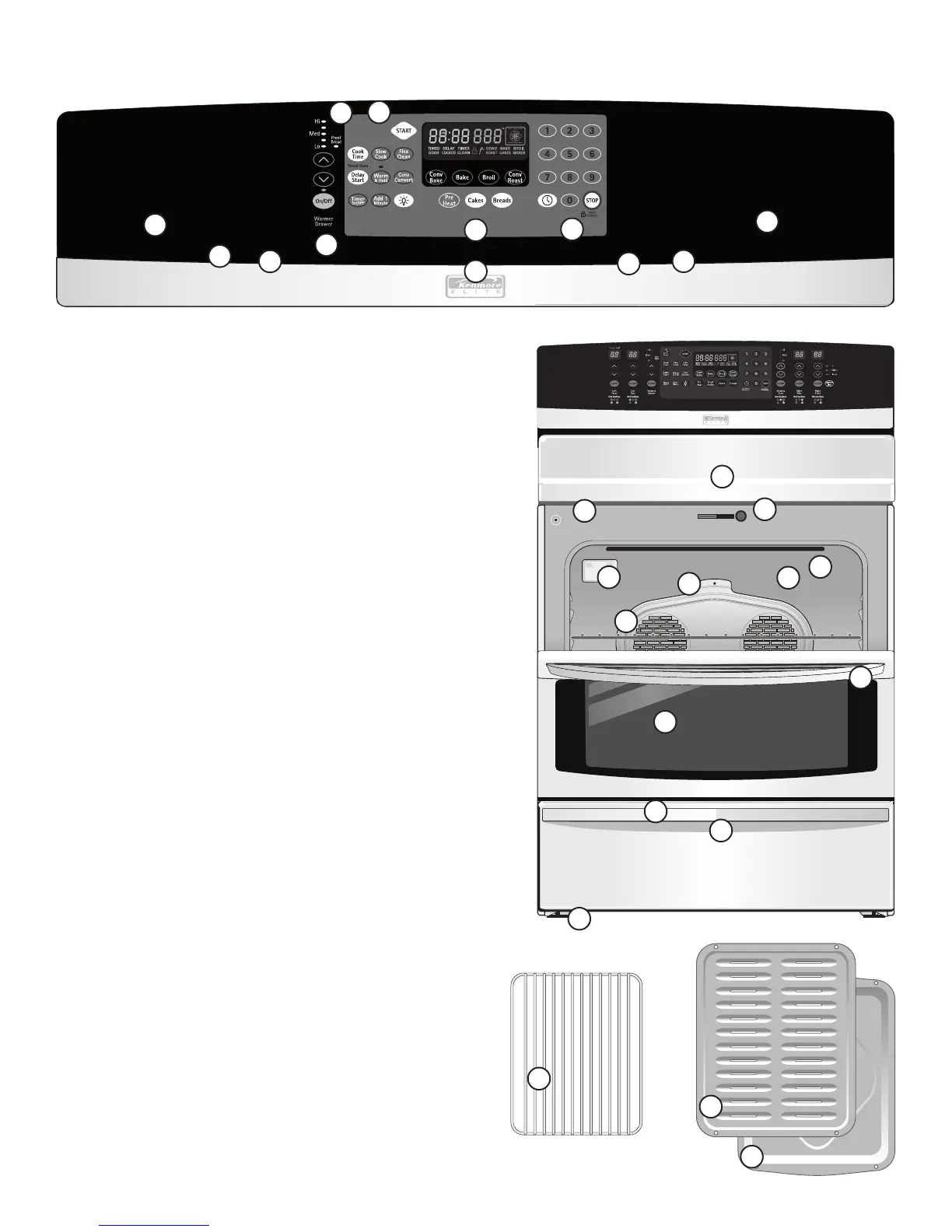 15. Grilles de four réglables recouvertes d’émail robuste.