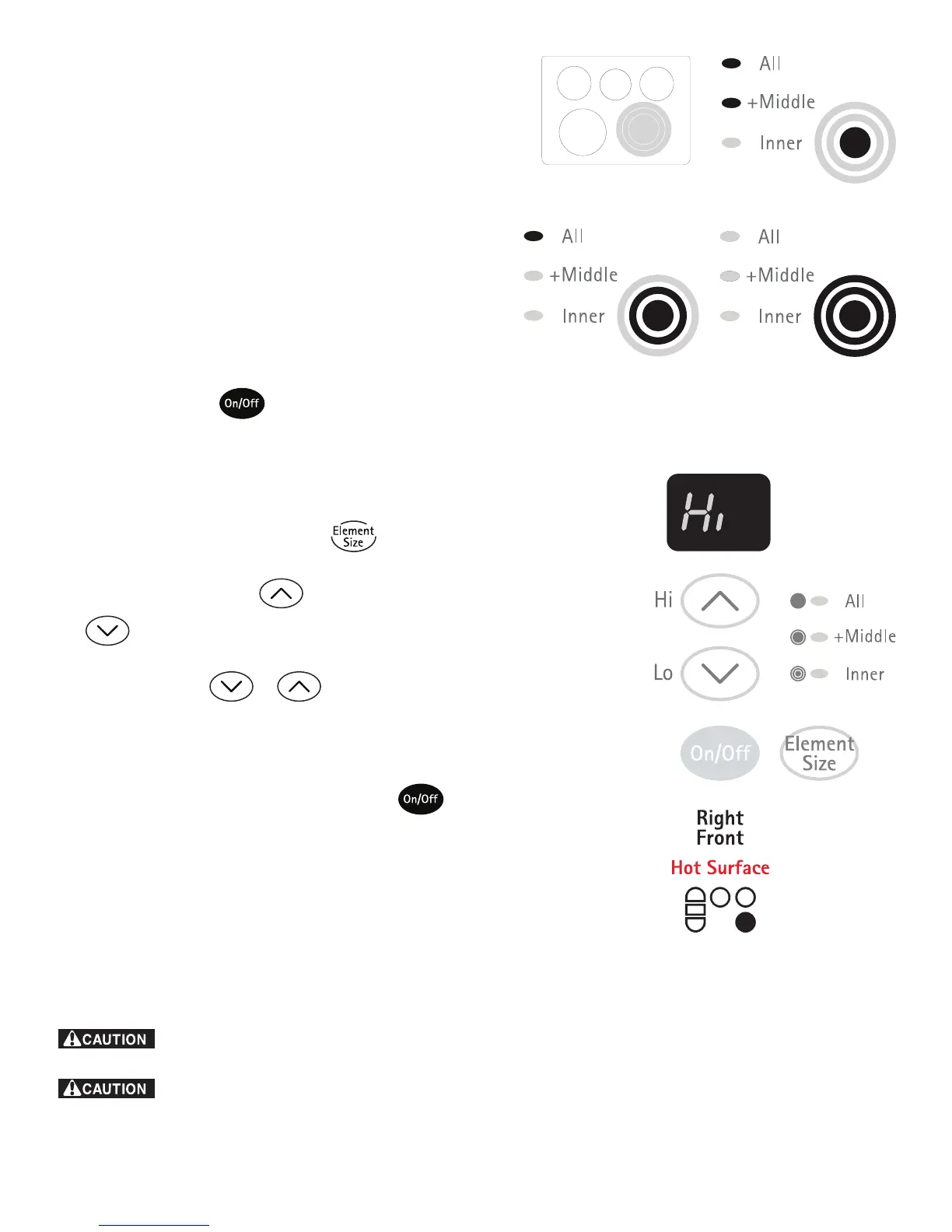 Note: The Hot Surface indicator light will remain ON if the cooktop is still