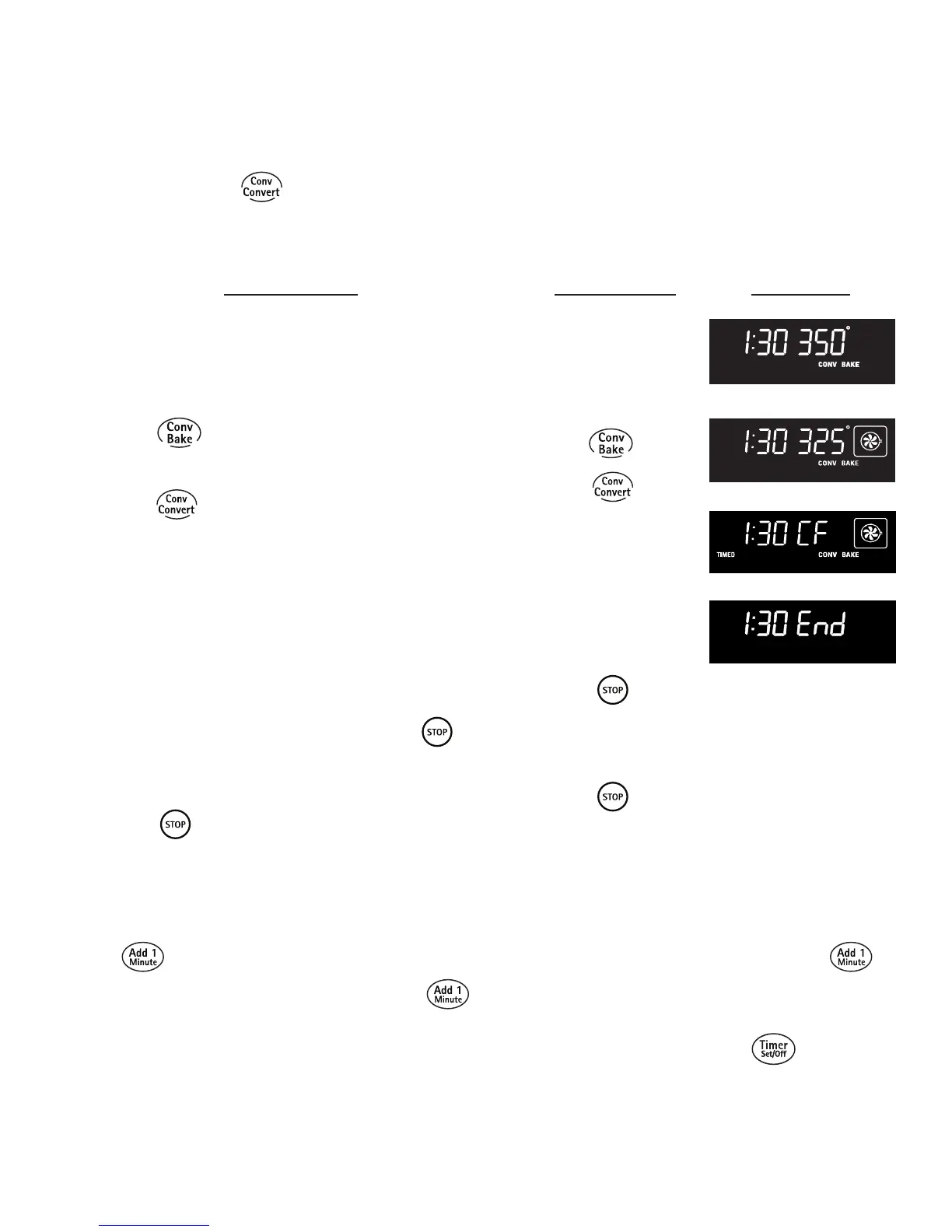 La touche CONV CONVERT (Conversion à la convection) est utilisée pour convertir automatiquement une cuisson standard