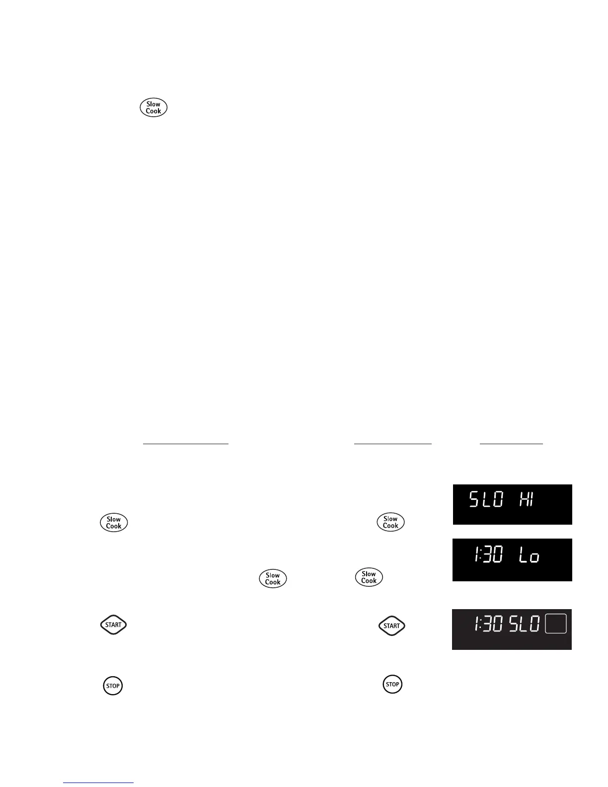 La touche SLOW COOK (Cuisson lente) sert à activer cette fonction. La cuisson lente sert à cuire les aliments plus