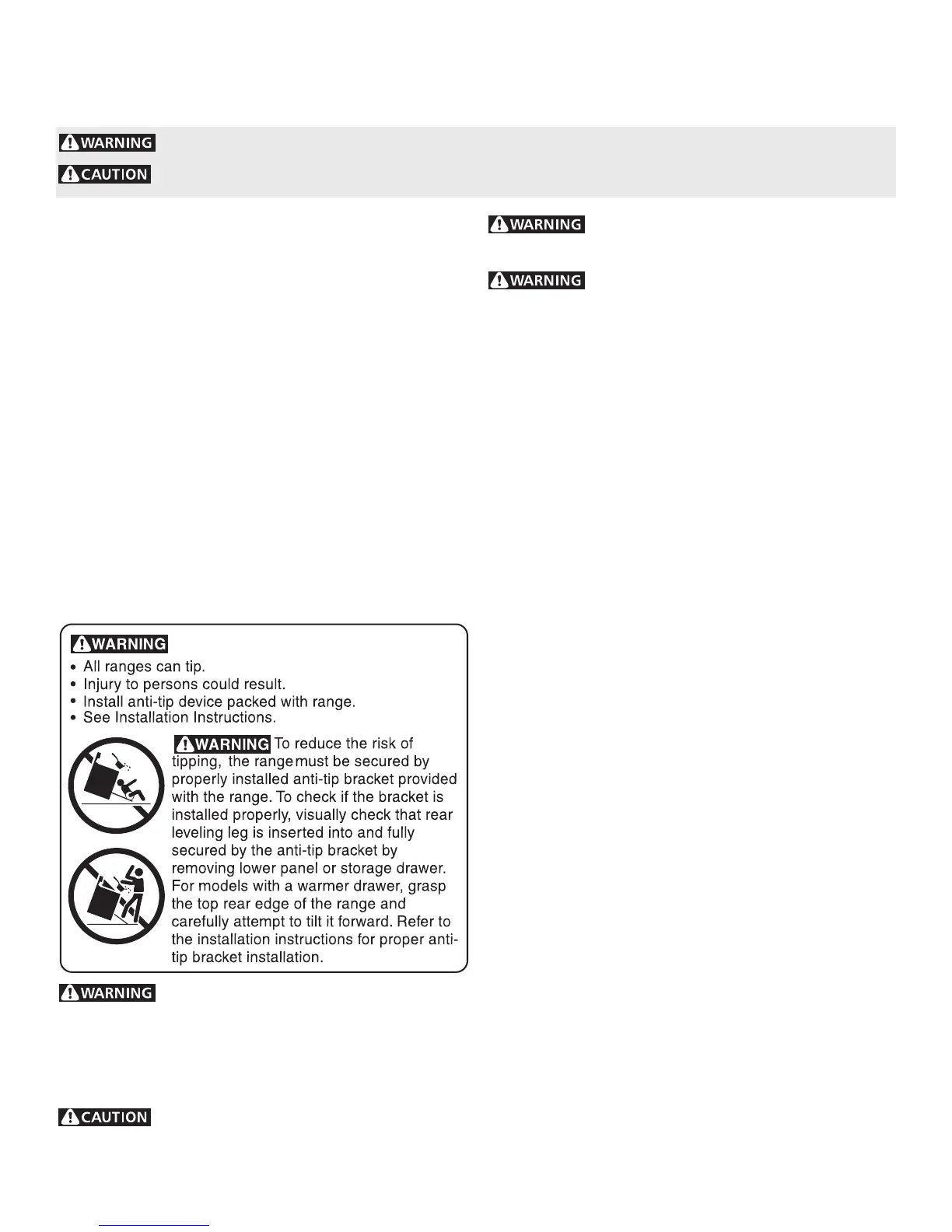 drawers of this range can result in serious injuries and