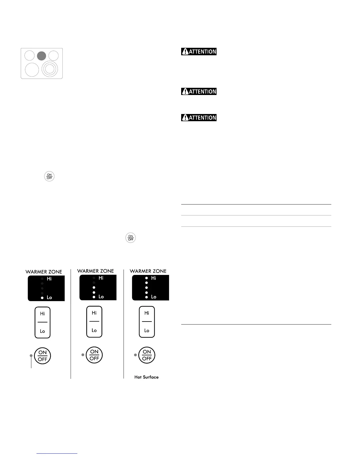ÉTEINDRE la zone de maintien au chaud. Soyez prudent lorsque
