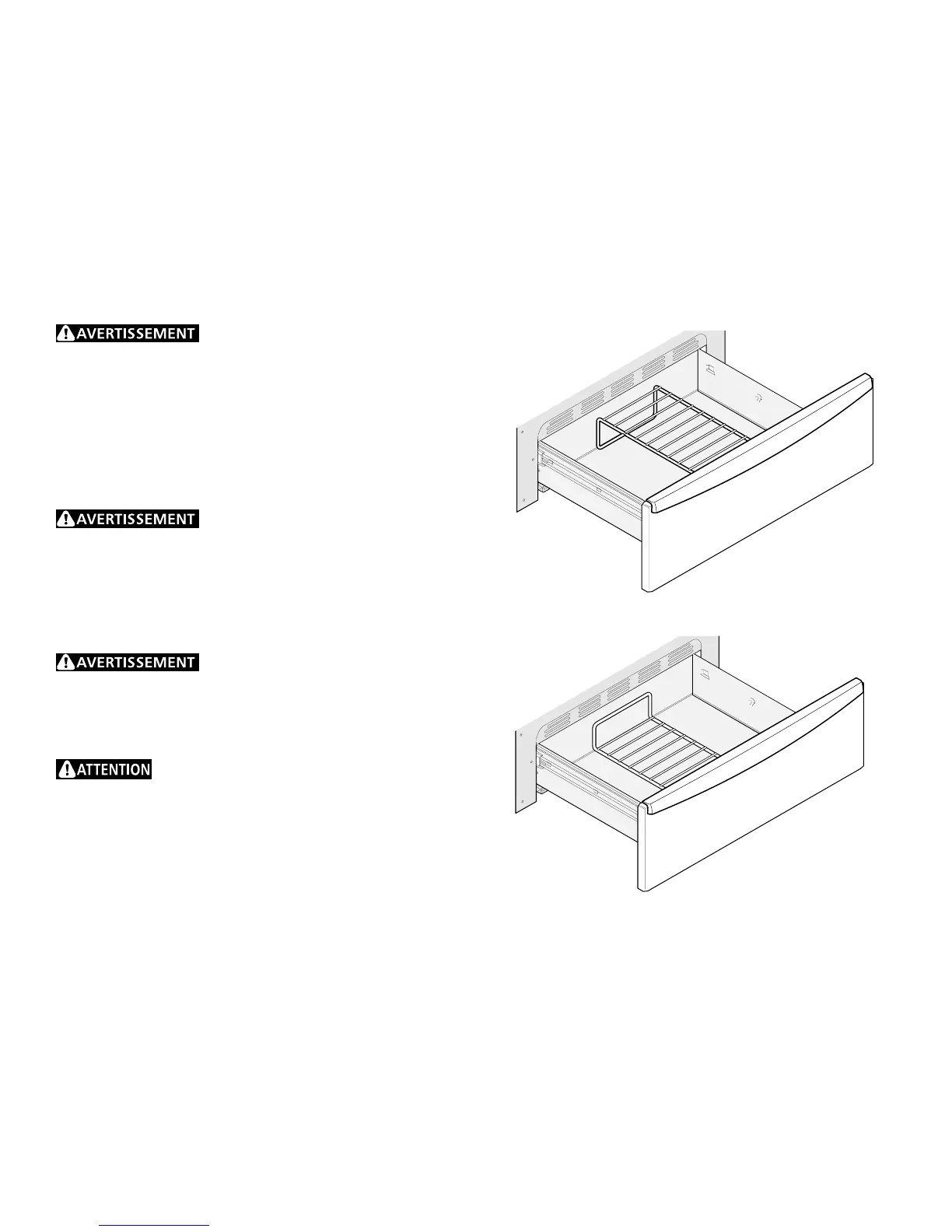 La grille du tiroir chauffant peut être utilisée de 2 façons :