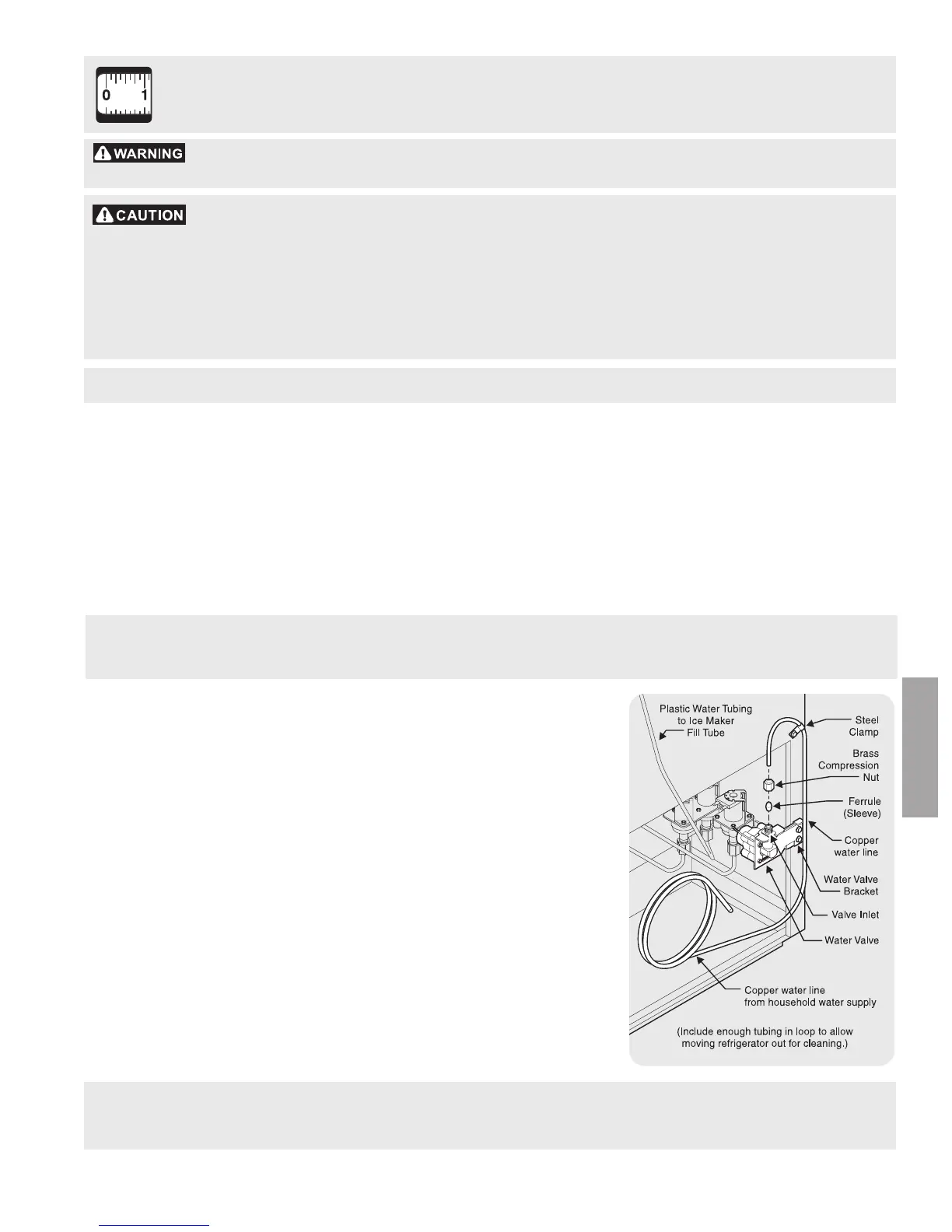 • A water supply line made of ¼ inch (6.4 mm) OD, copper tubing. To determine the length of copper tubing needed,