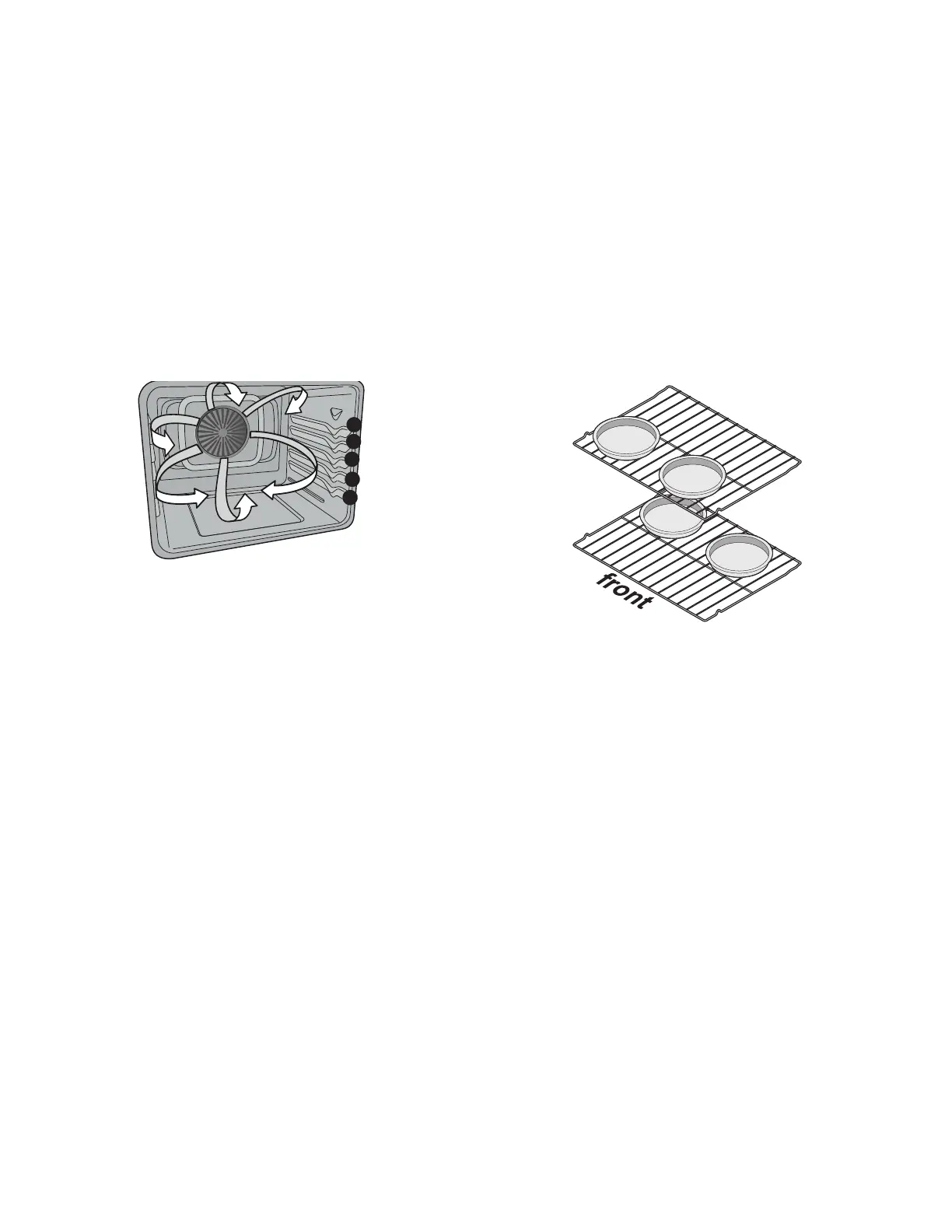 • When using two oven racks, place in positions 2 and 4