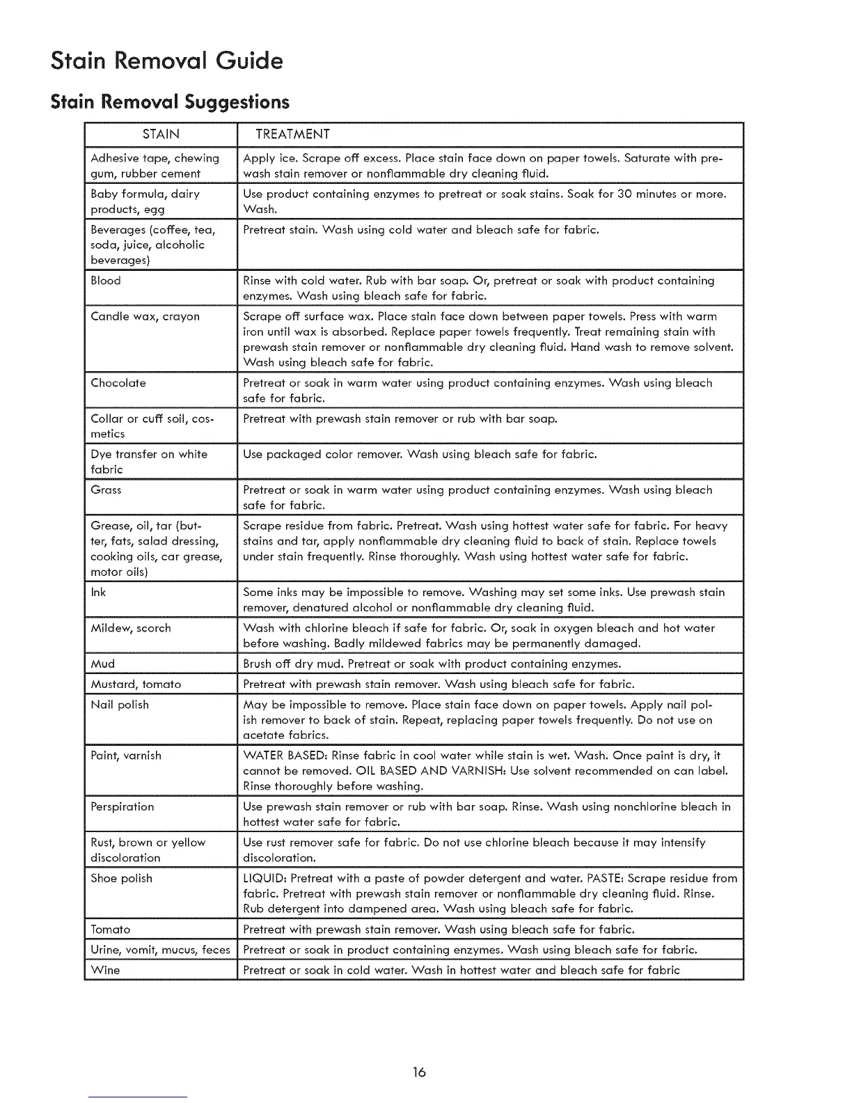 Stain Removal Guide