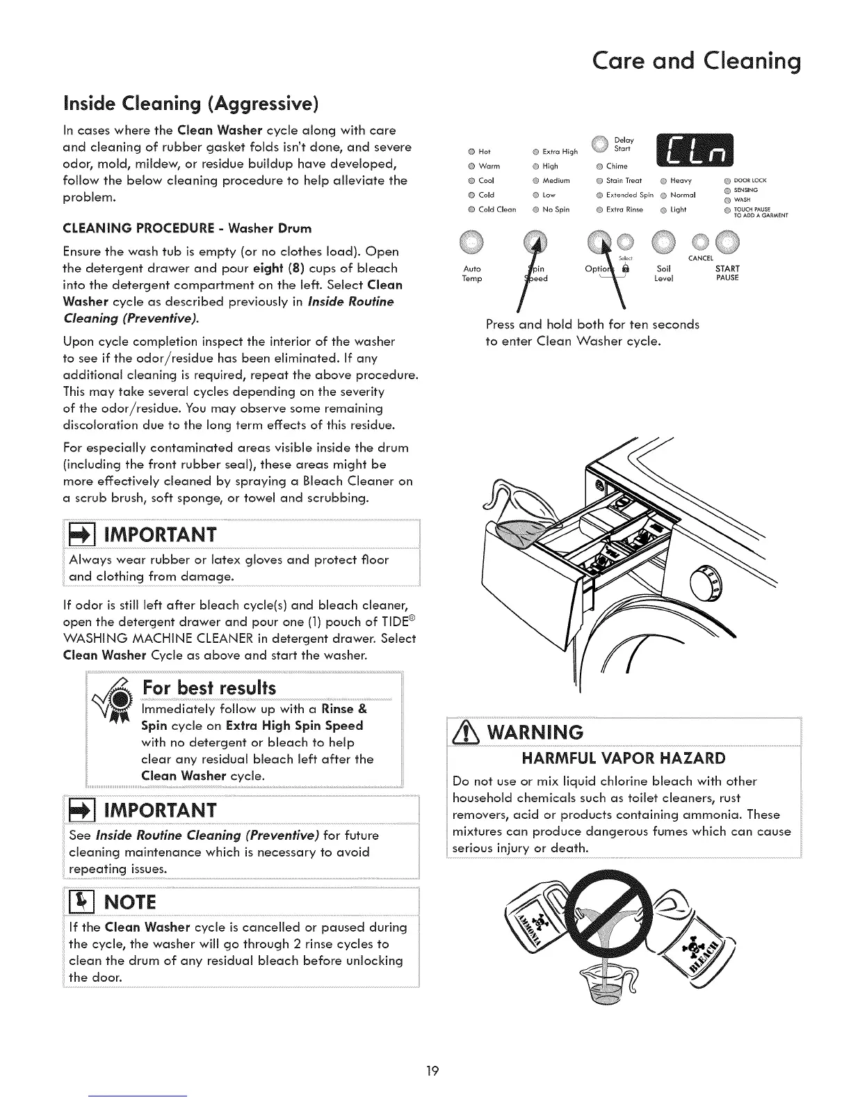 @ Cold Clean ® No Spin Extra Rinse O Light TOUCH PAUSE