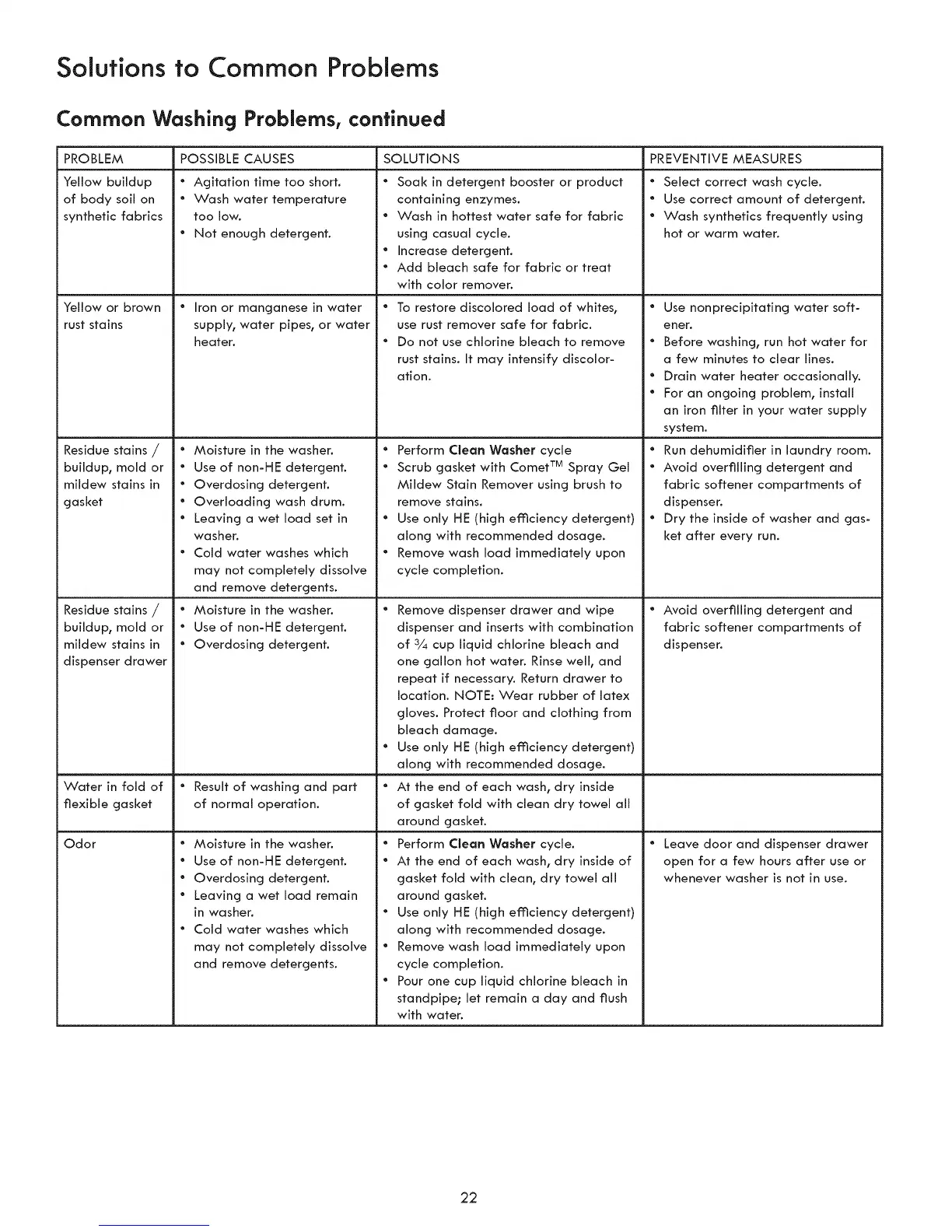 Common Washing Problems, continued