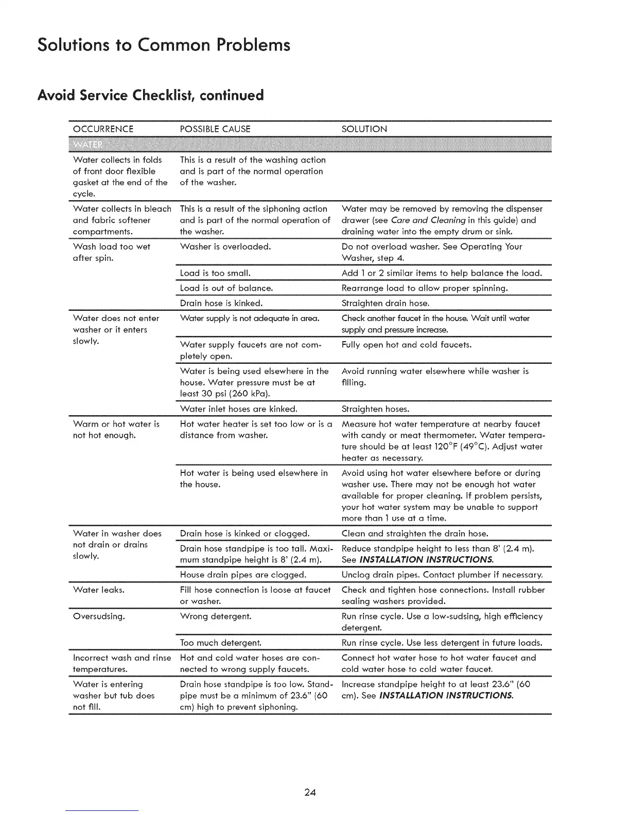 not hot enough, distance from washer, with candy or meat thermometer. Water tempera-