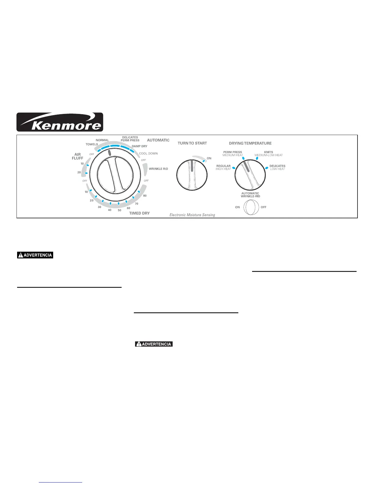 7. Ponga en marcha la secadora. Gire la perilla de