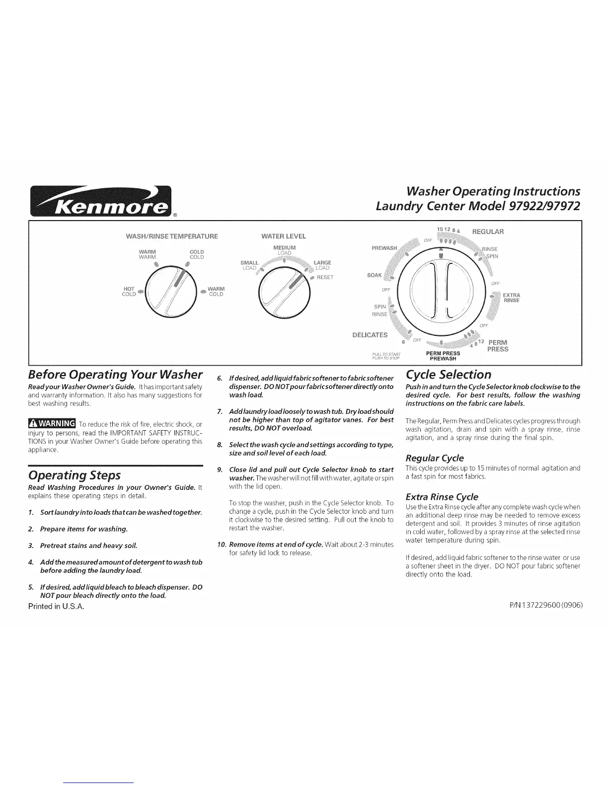 Washer Operating Instructions