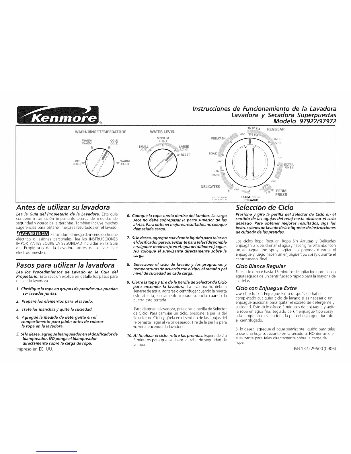 Lea la Guia del Propietario de la Lavadora. Esta guia