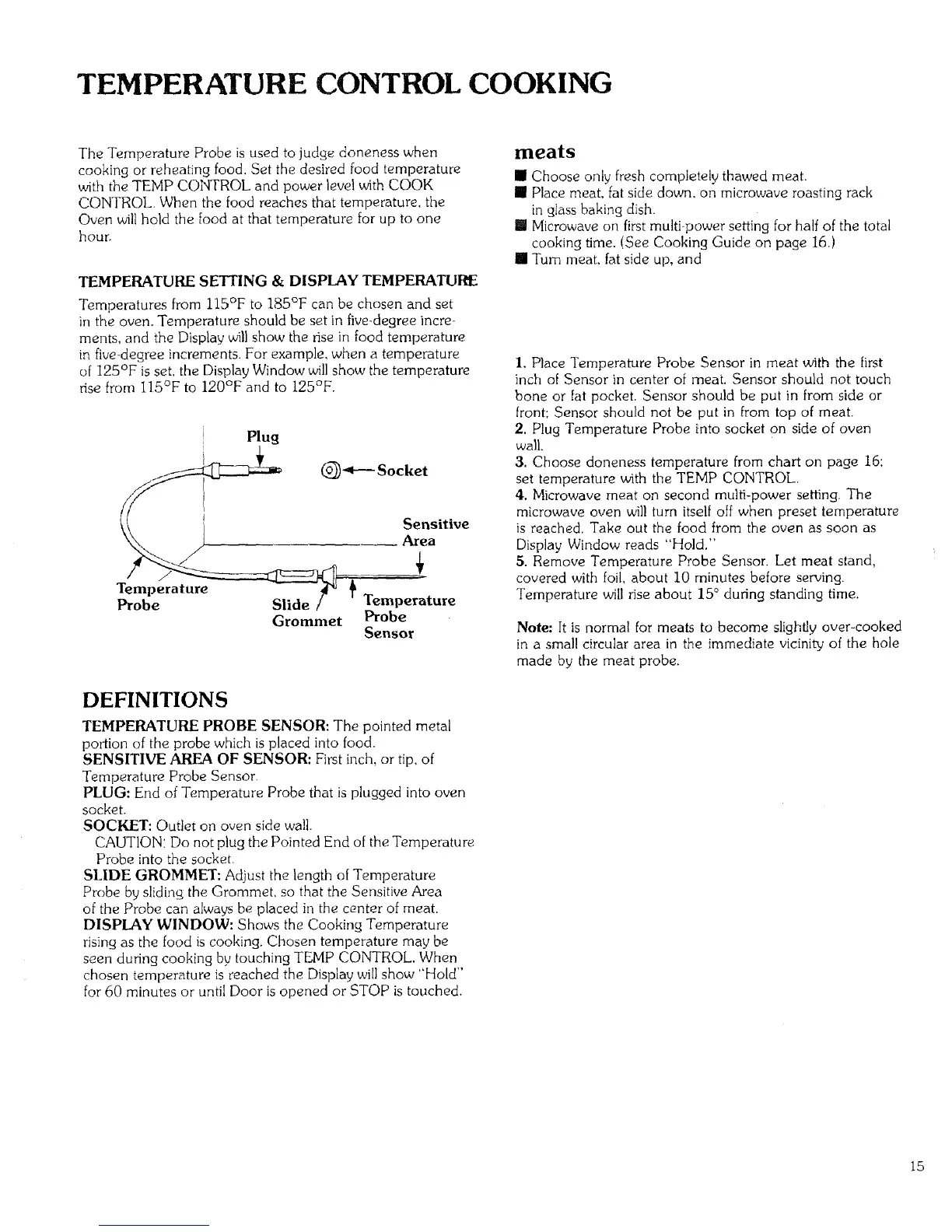 CAUTION'. Do not plug the Pointed End of the Temperature