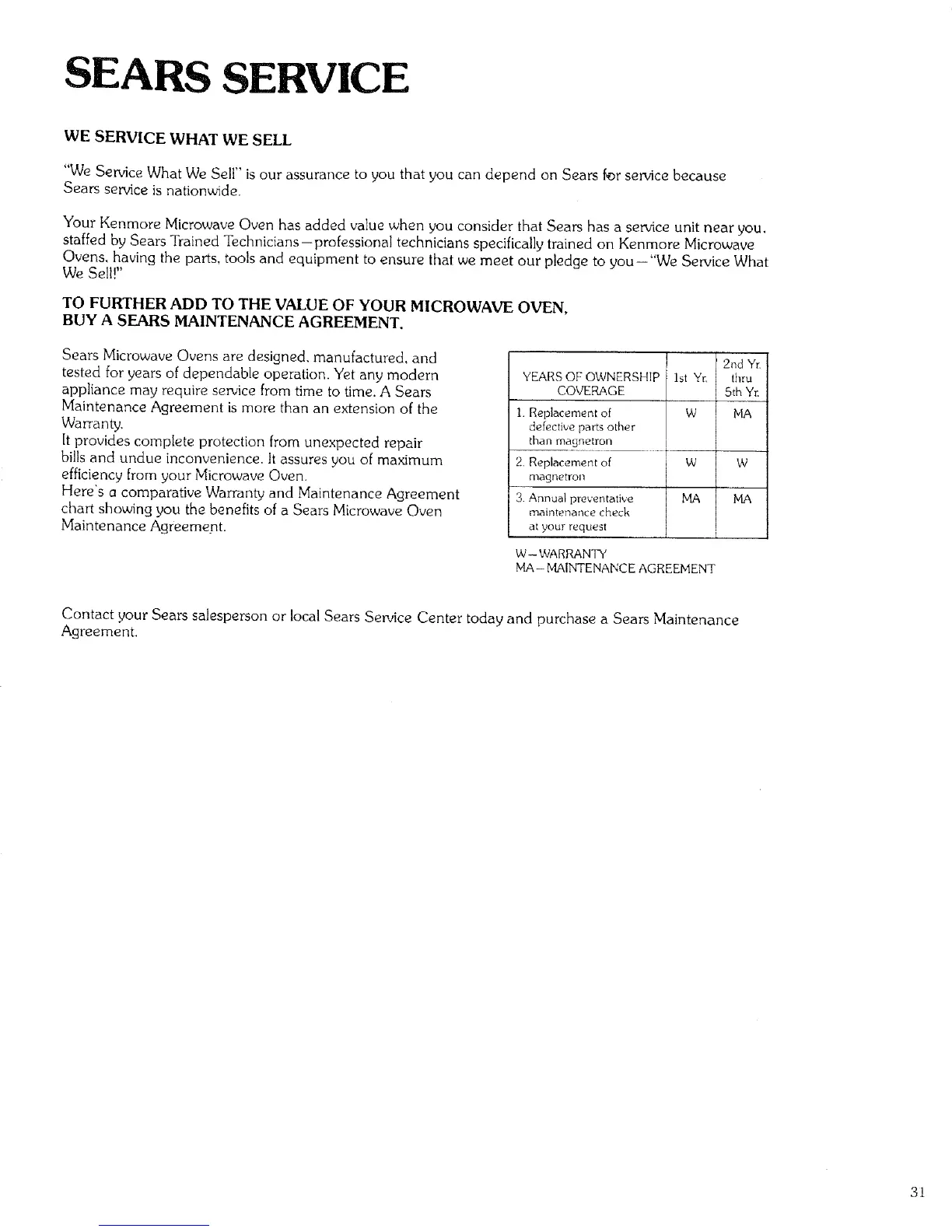 BUY A SEARS MAINTENANCE AGREEMENT.
