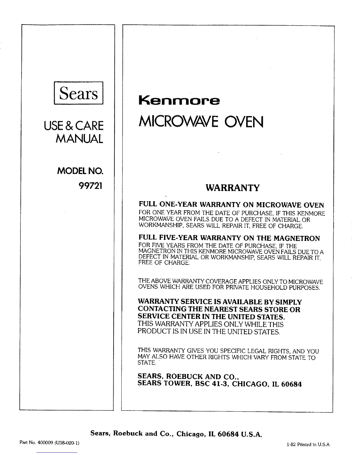 Sears, Roebuck and Co., Chicago, IL 60684 U.S.A.
