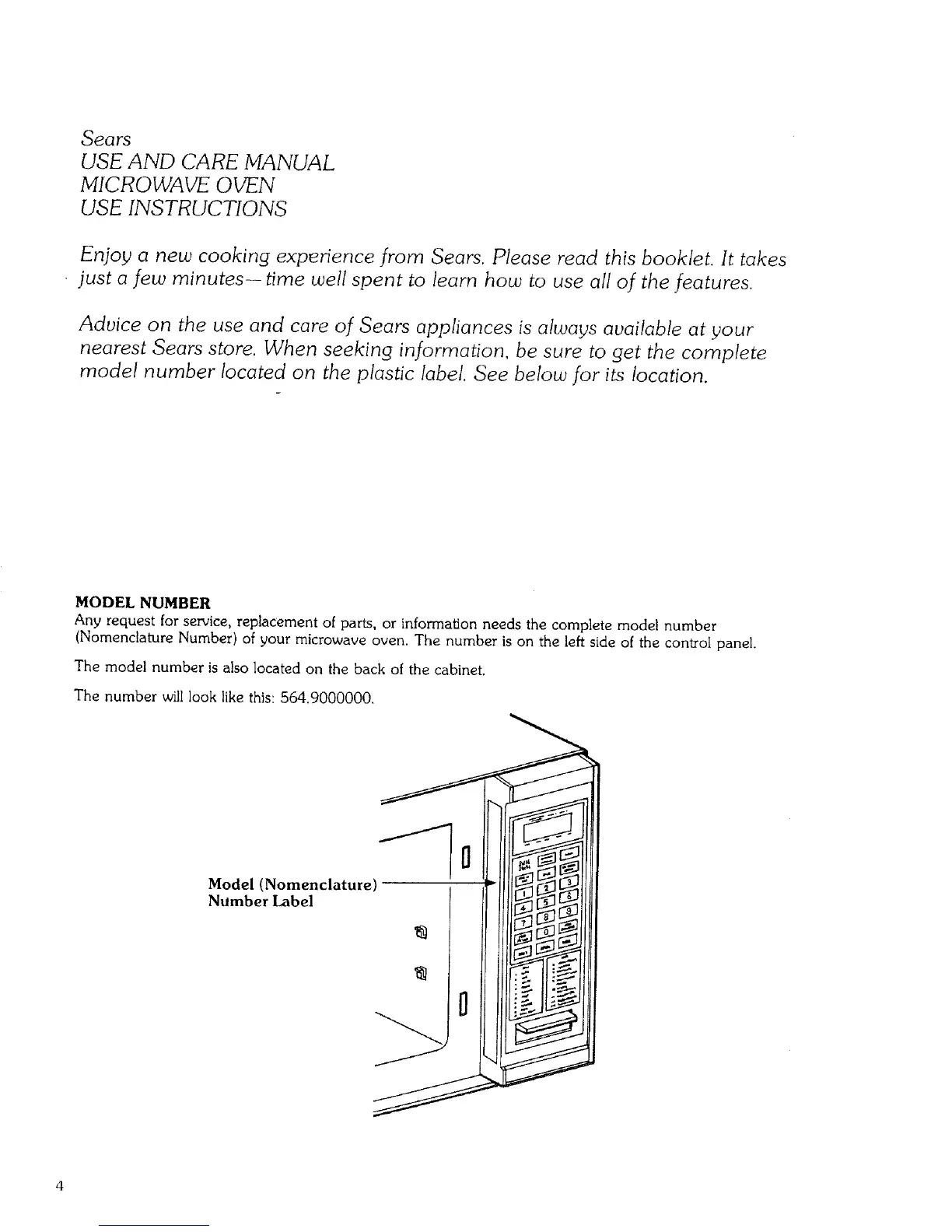 (Nomenclature Number) of your microwave oven. The number is on the left side of the con_ol panel.