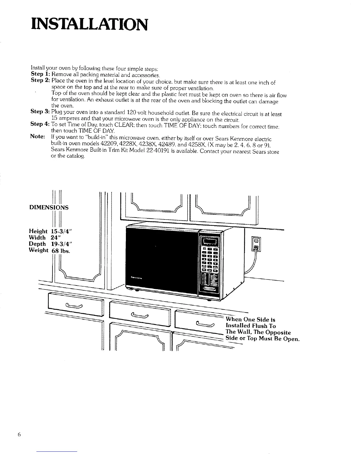 Note: If you want to "build-in" this microwave oven, either by itself or over Sears Kenmore electric