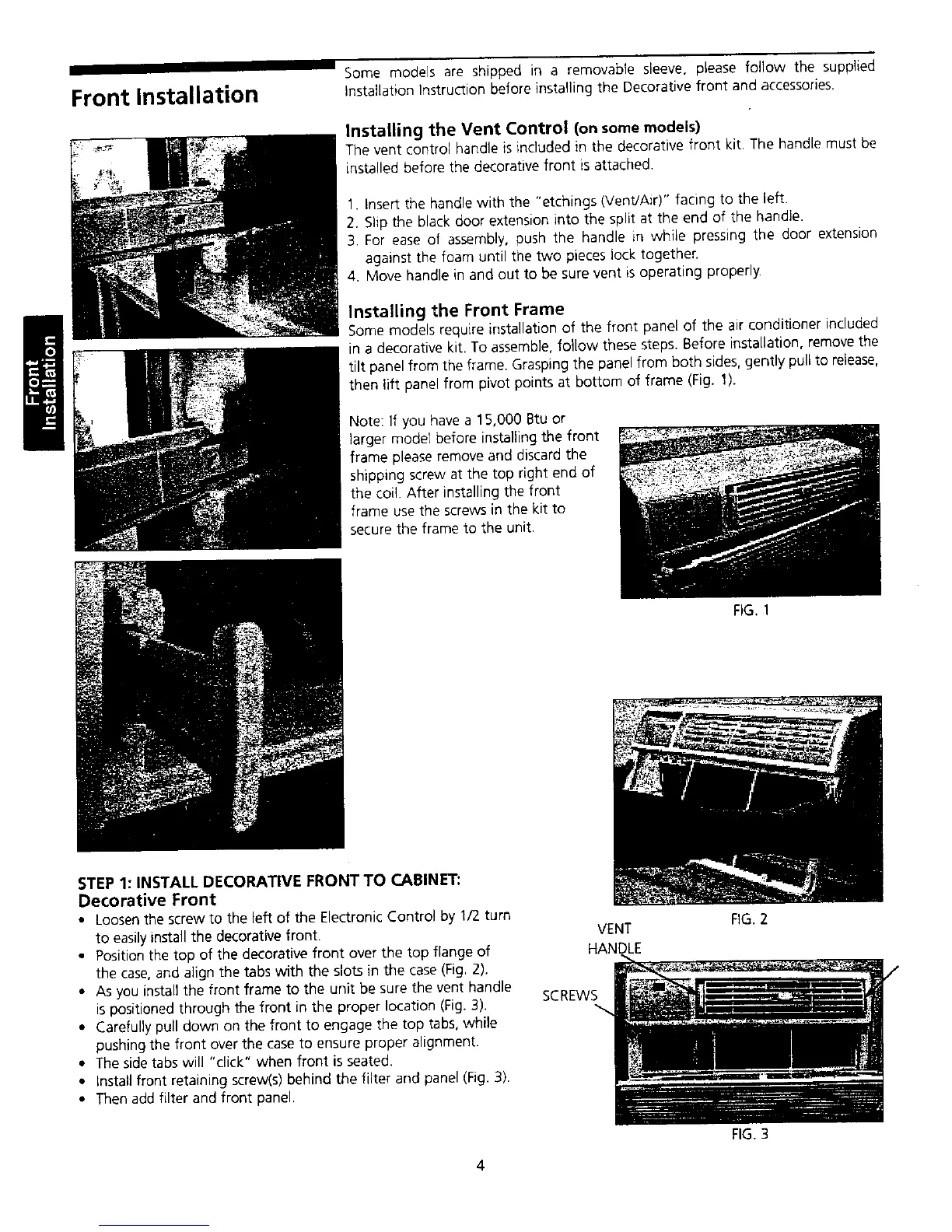 The vent control handle isincluded in the decorative front kit. The handle must be