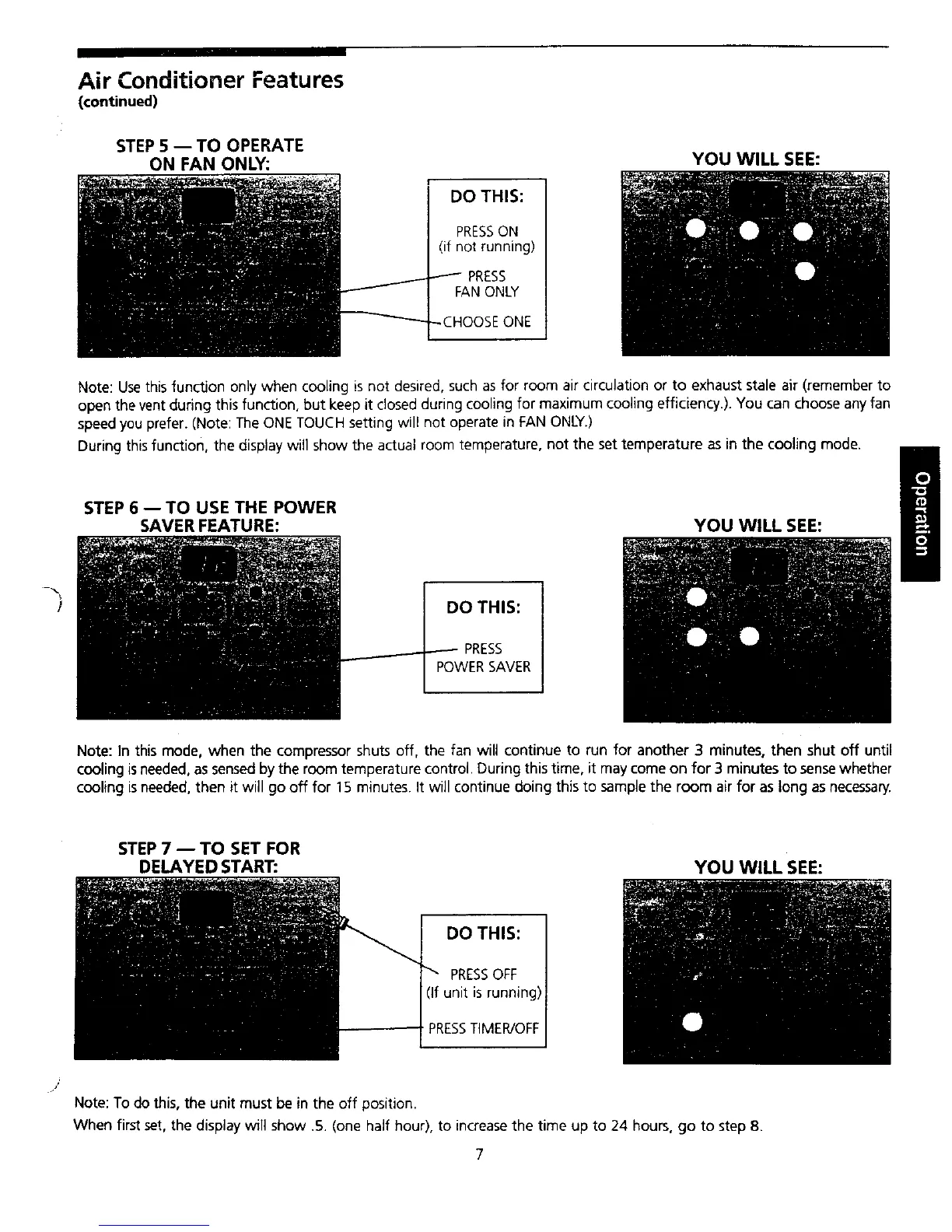 Note: Usethis function only when cooling isnot desired, such as for room air circulation or to exhaust stale air (remember to
