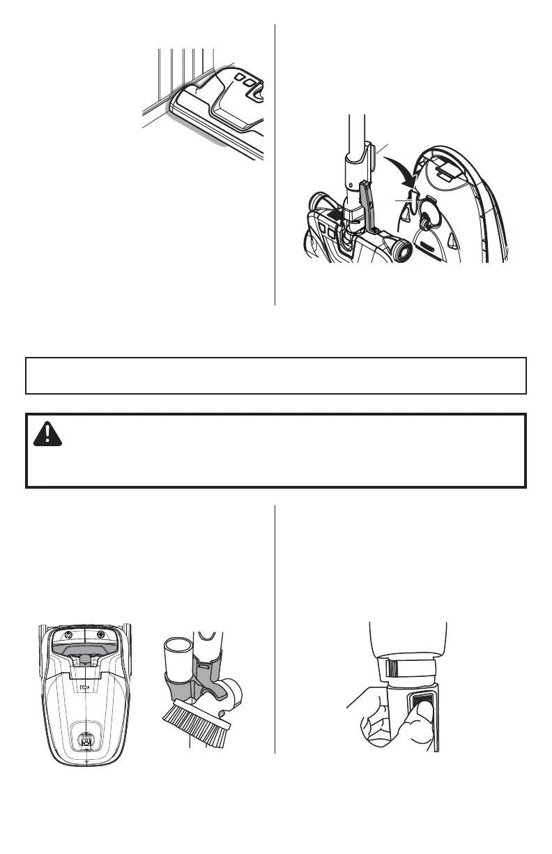 DO NOT attach or remove handle or wands while vacuum cleaner is ON. This could