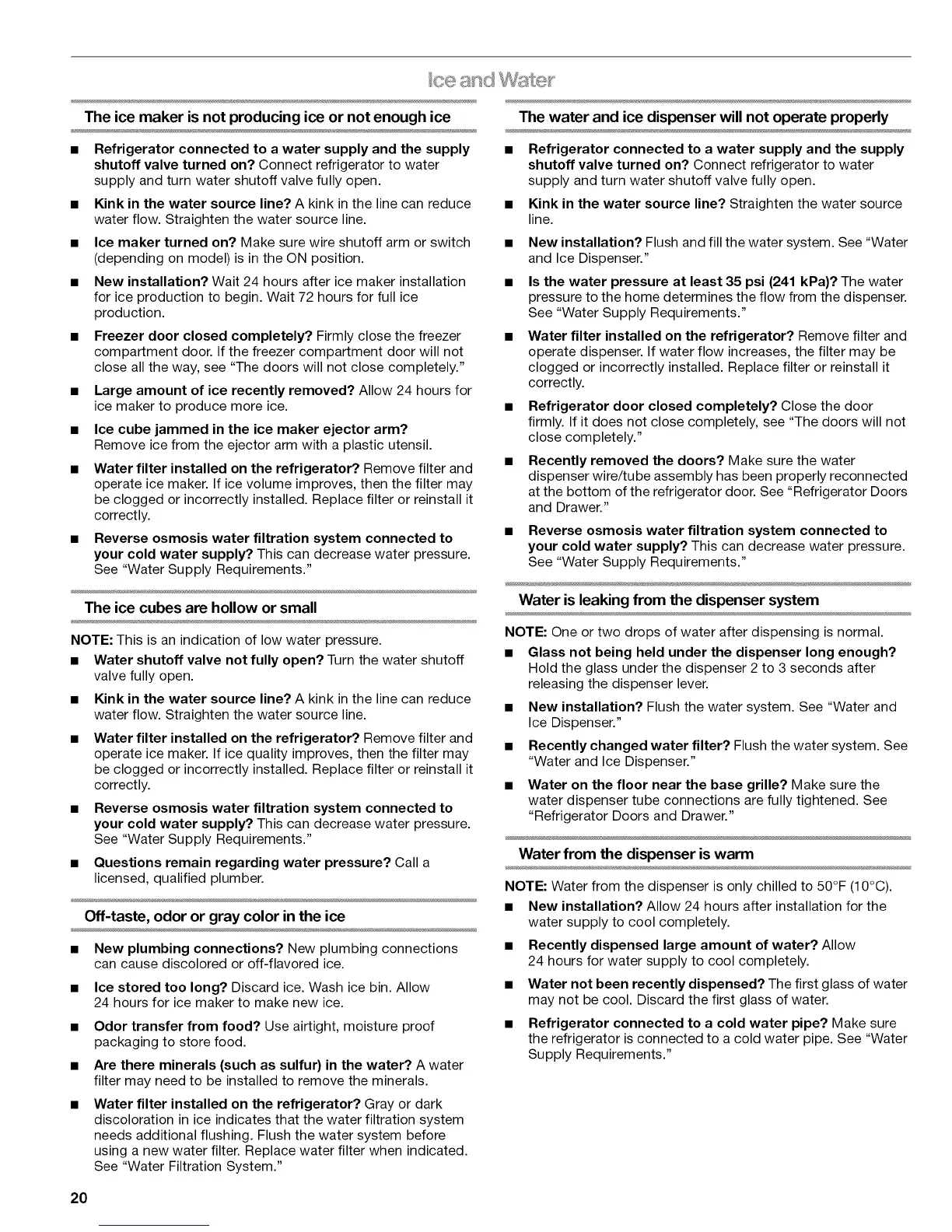 • Ice maker turned on? Make sure wire shutoff arm or switch •