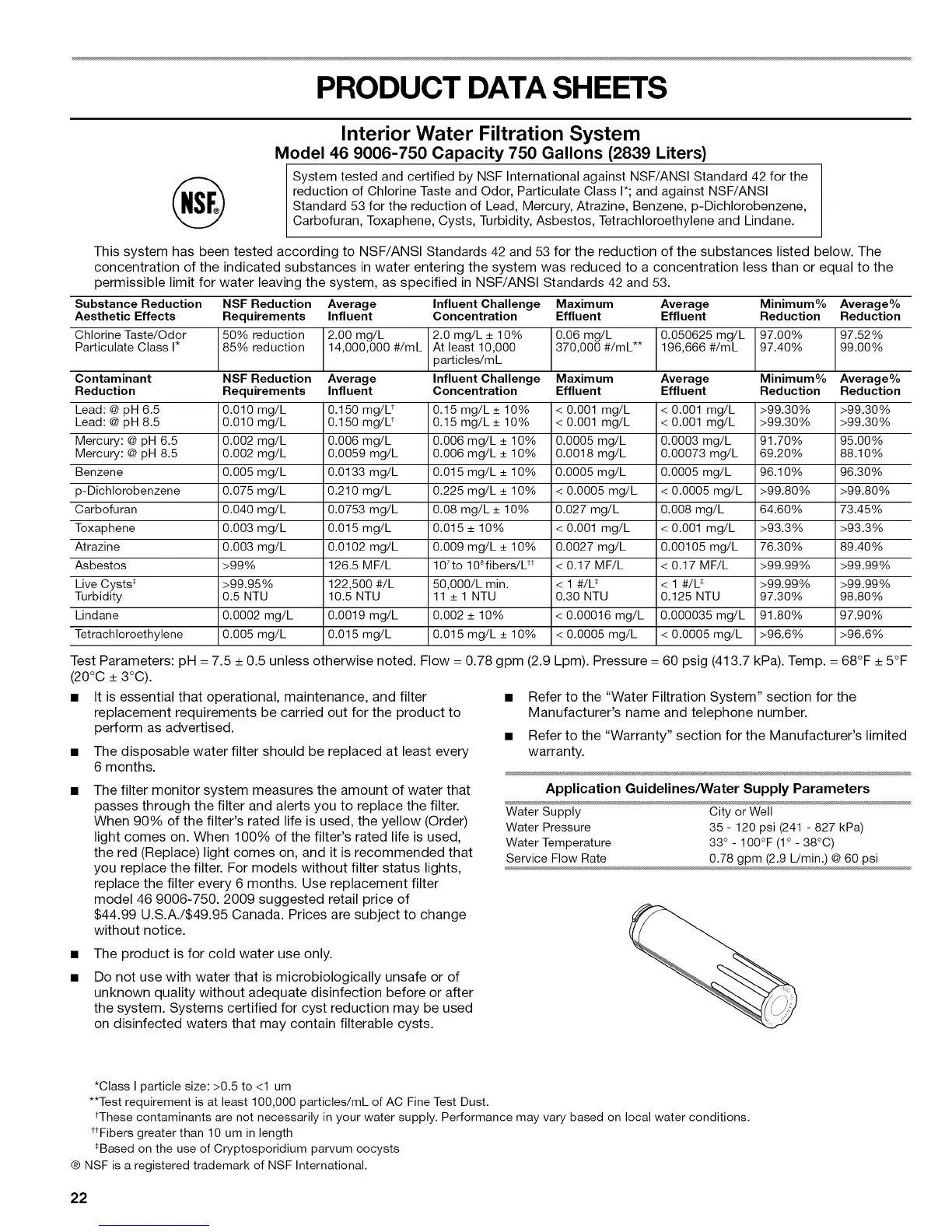 System tested and certified by NSF International against NSF/ANSI Standard 42 for the