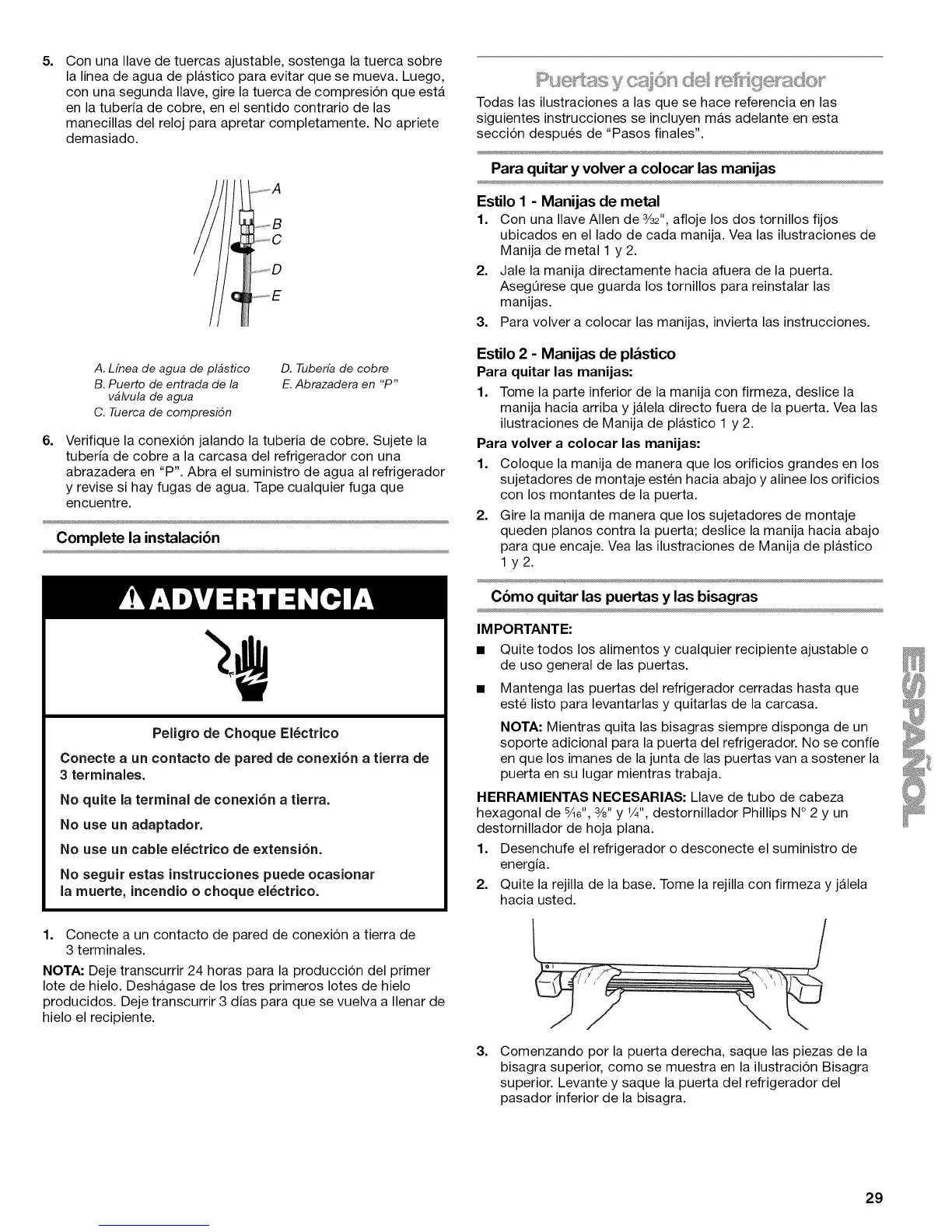 1. Desenchufe el refrigerador 0 desconecte el suministro de