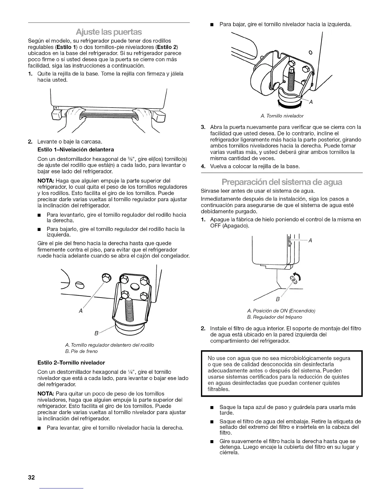 regulables (Estilo 1) o dos tornillos-pie niveladores (Estilo 2)