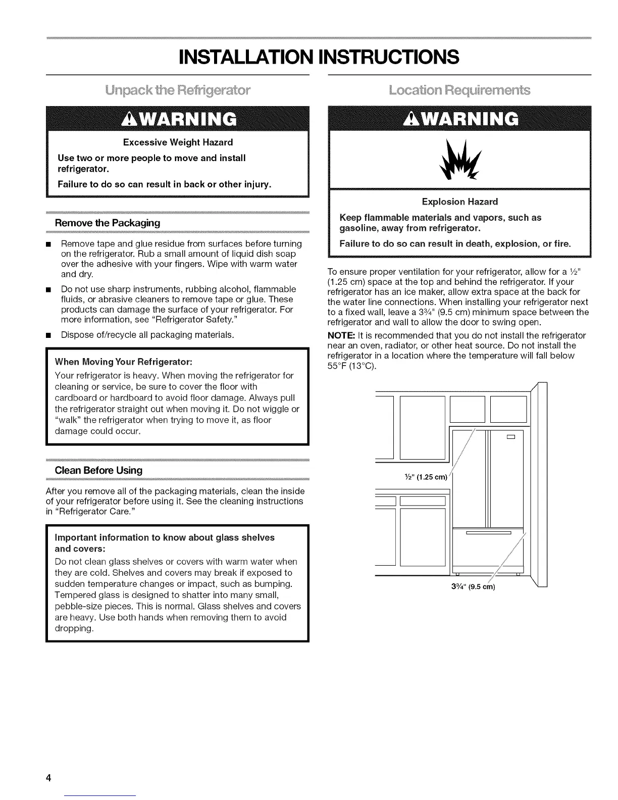 (1.25 cm) space at the top and behind the refrigerator. If your