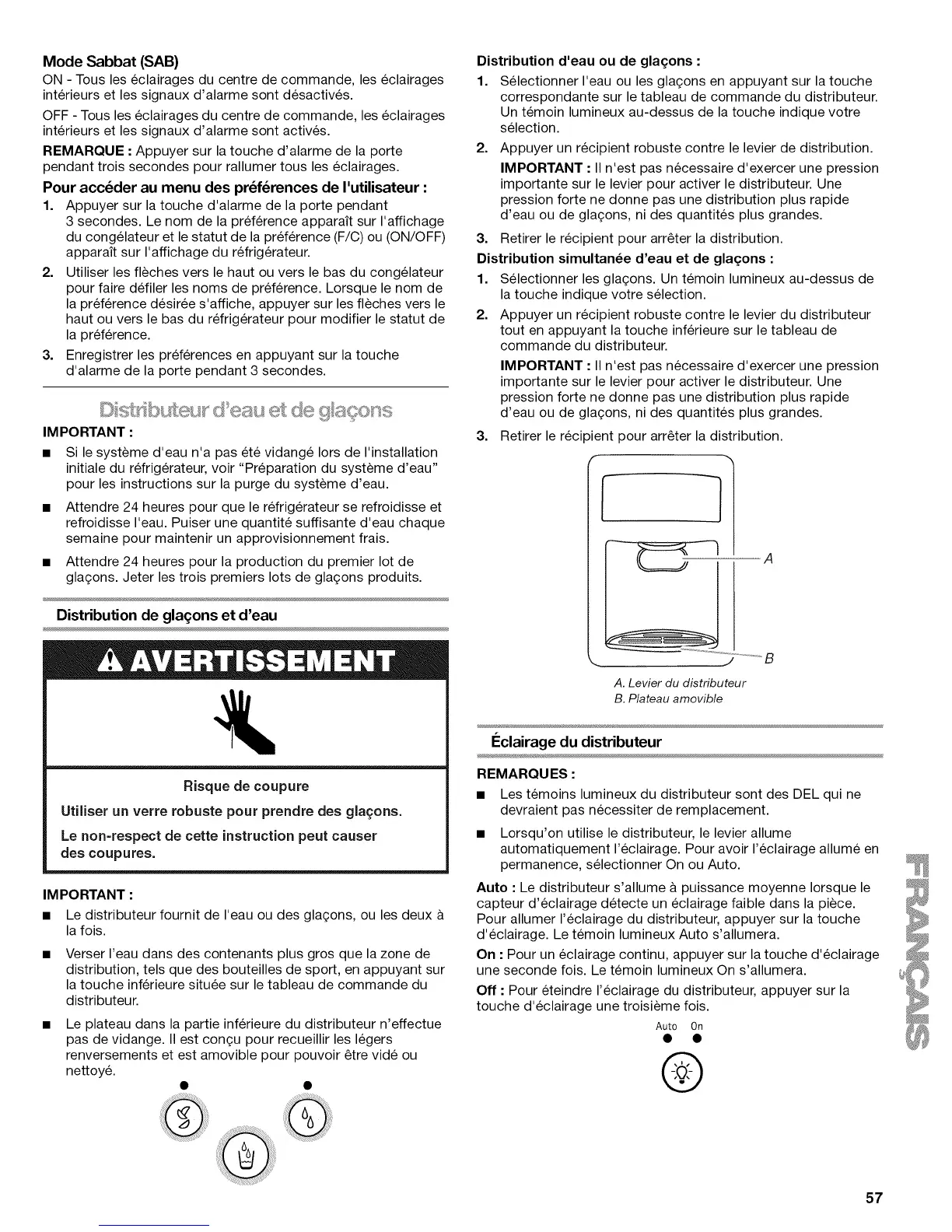 • Le distributeur fournit de I'eau ou des gla£;ons, ou les deux &