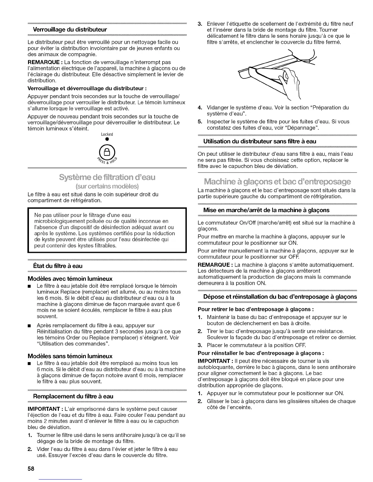 • Le filtre & eau jetable doit _tre remplace Iorsque le temoin