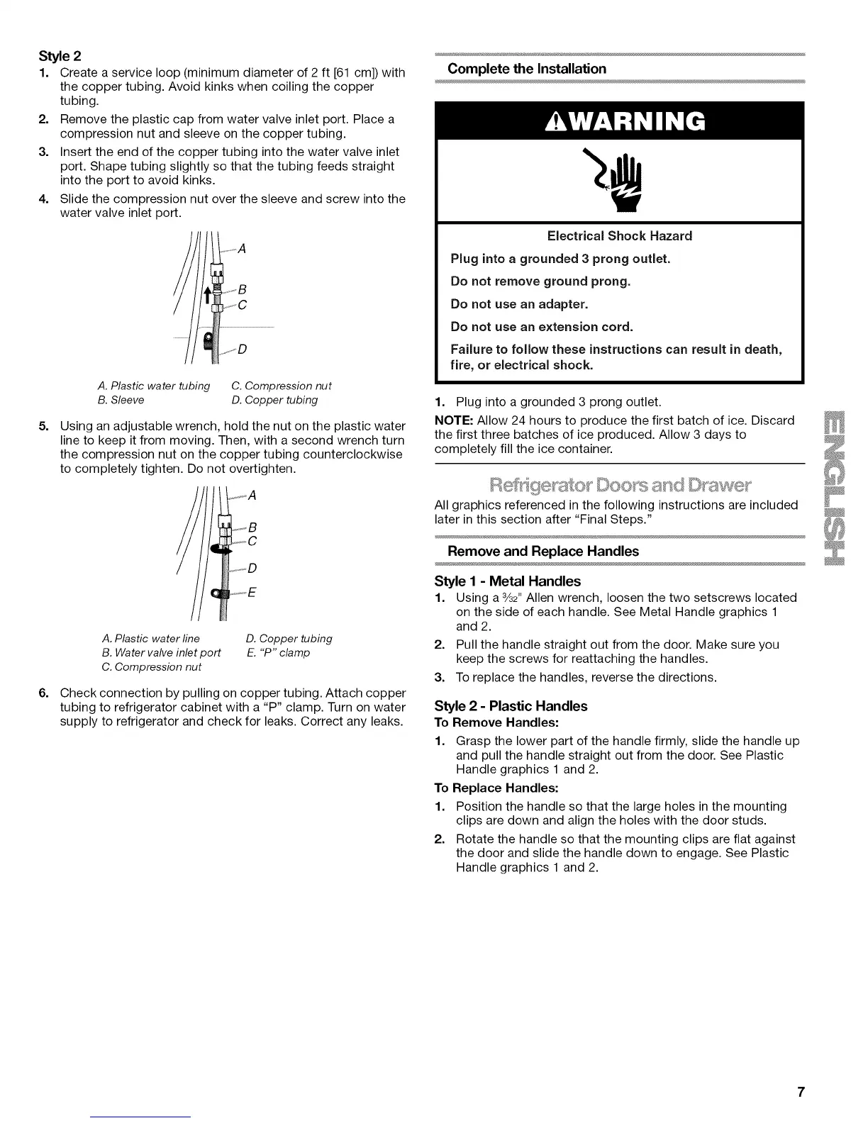 tubing to refrigerator cabinet with a "P" clamp. Turn on water