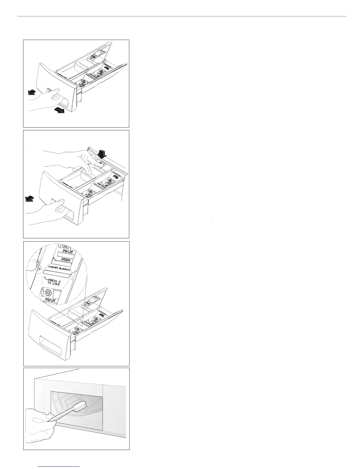 • Retirer les contenants amovibles des compartiments pour le javellisant et
