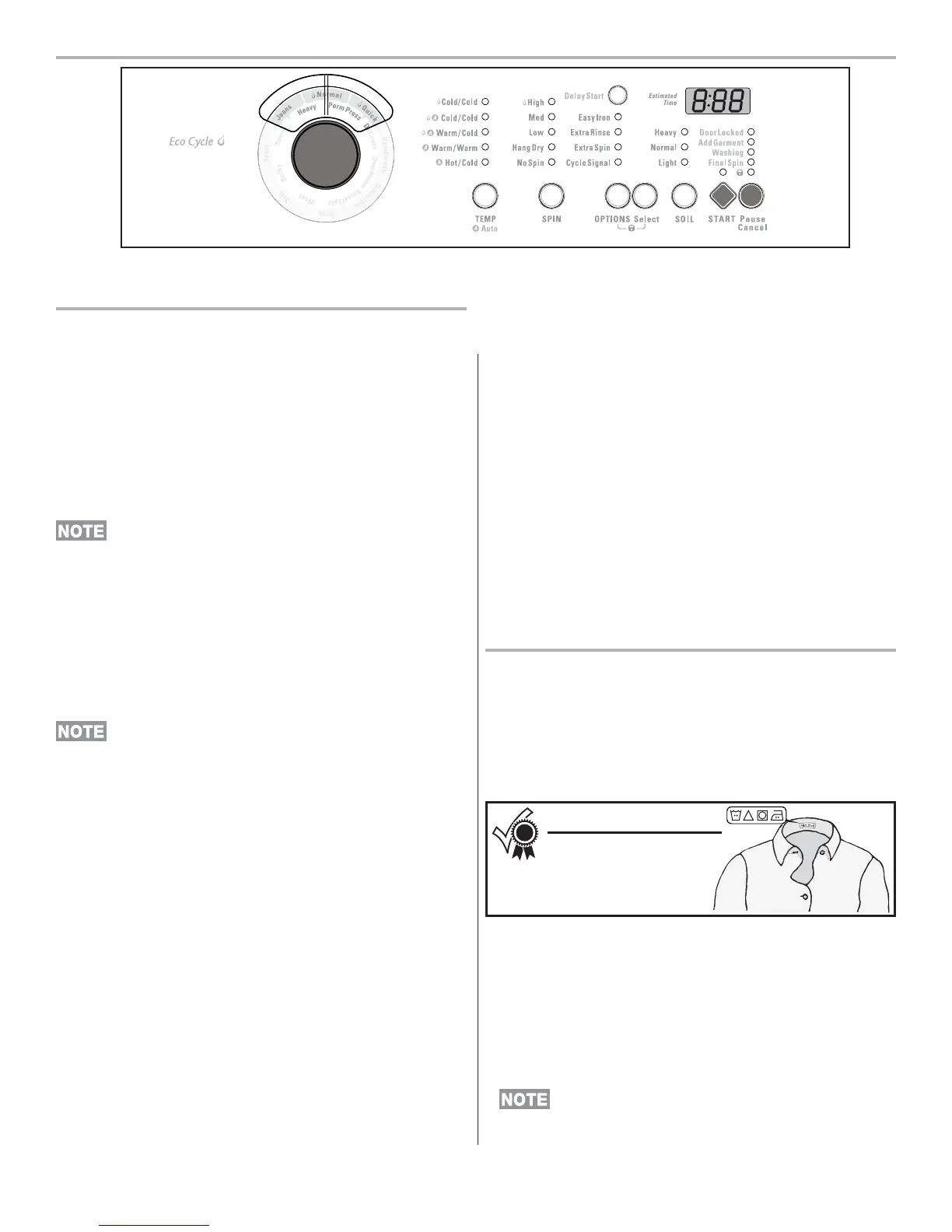 This manual covers many models and not all cycles, options, or features listed are available on