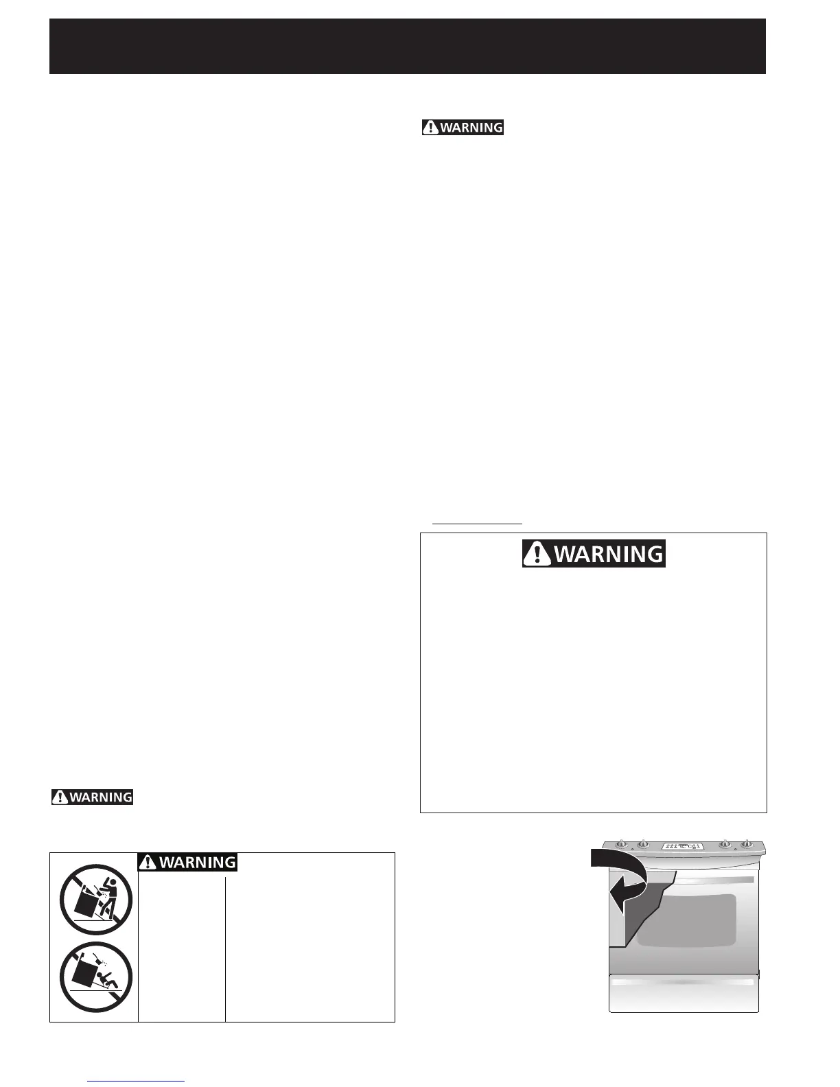 door or drawer of this range can result in serious