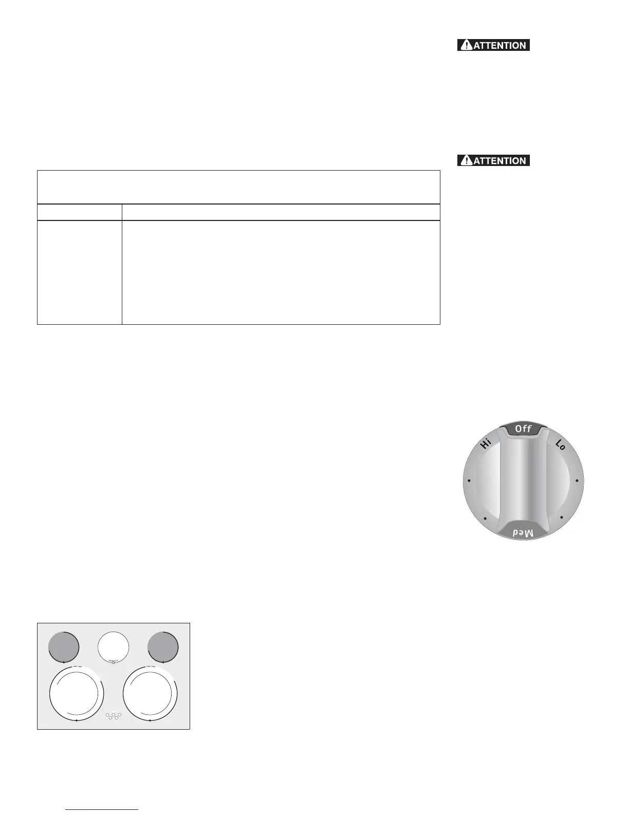 Note: La grosseur ou le type d’ustensile utilisés influenceront le réglage nécessaire pour