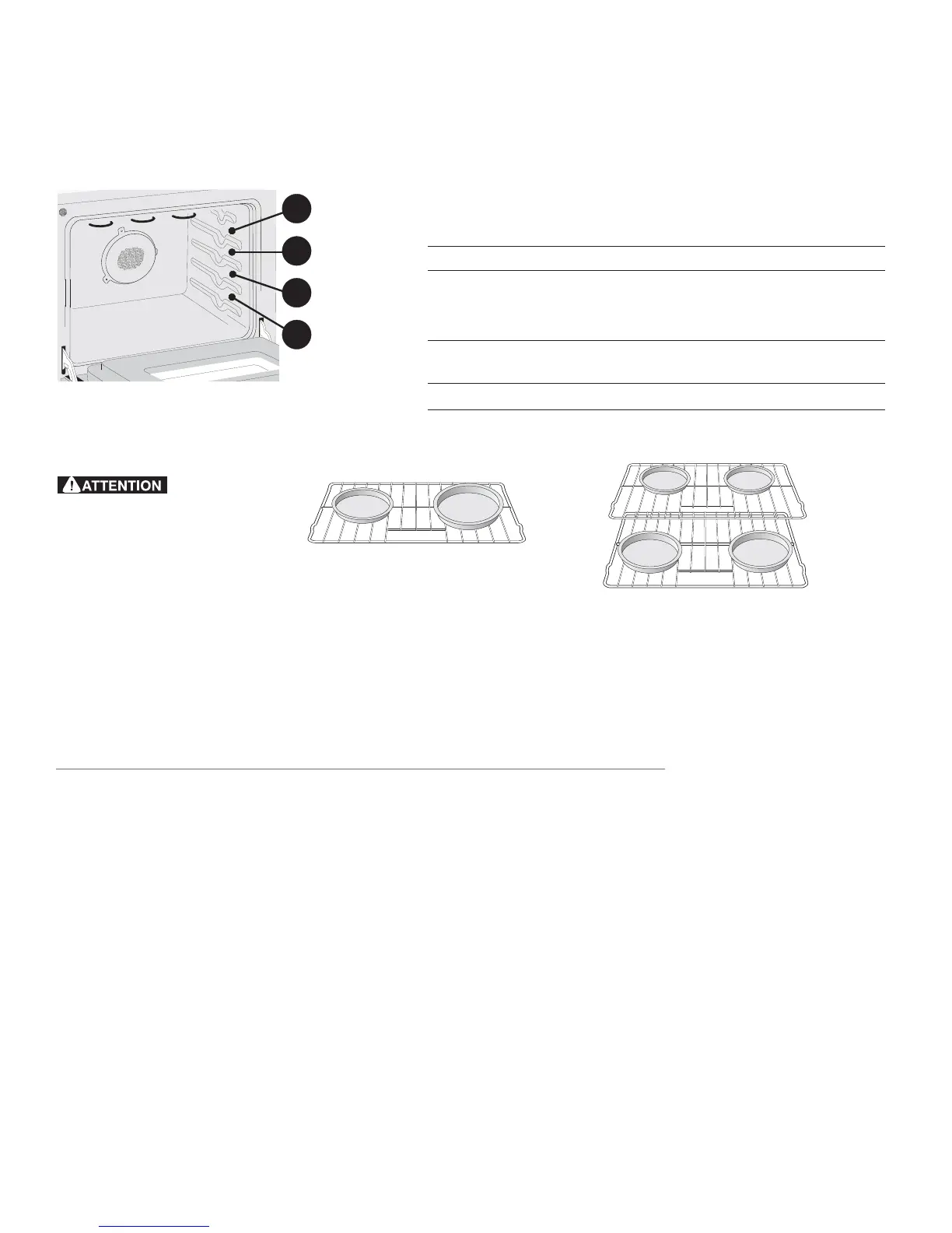 Pour la cuisson avec une seule grille, placez la grille en position 2 ou 3. Pour la cuisson avec plusieurs grilles, placez