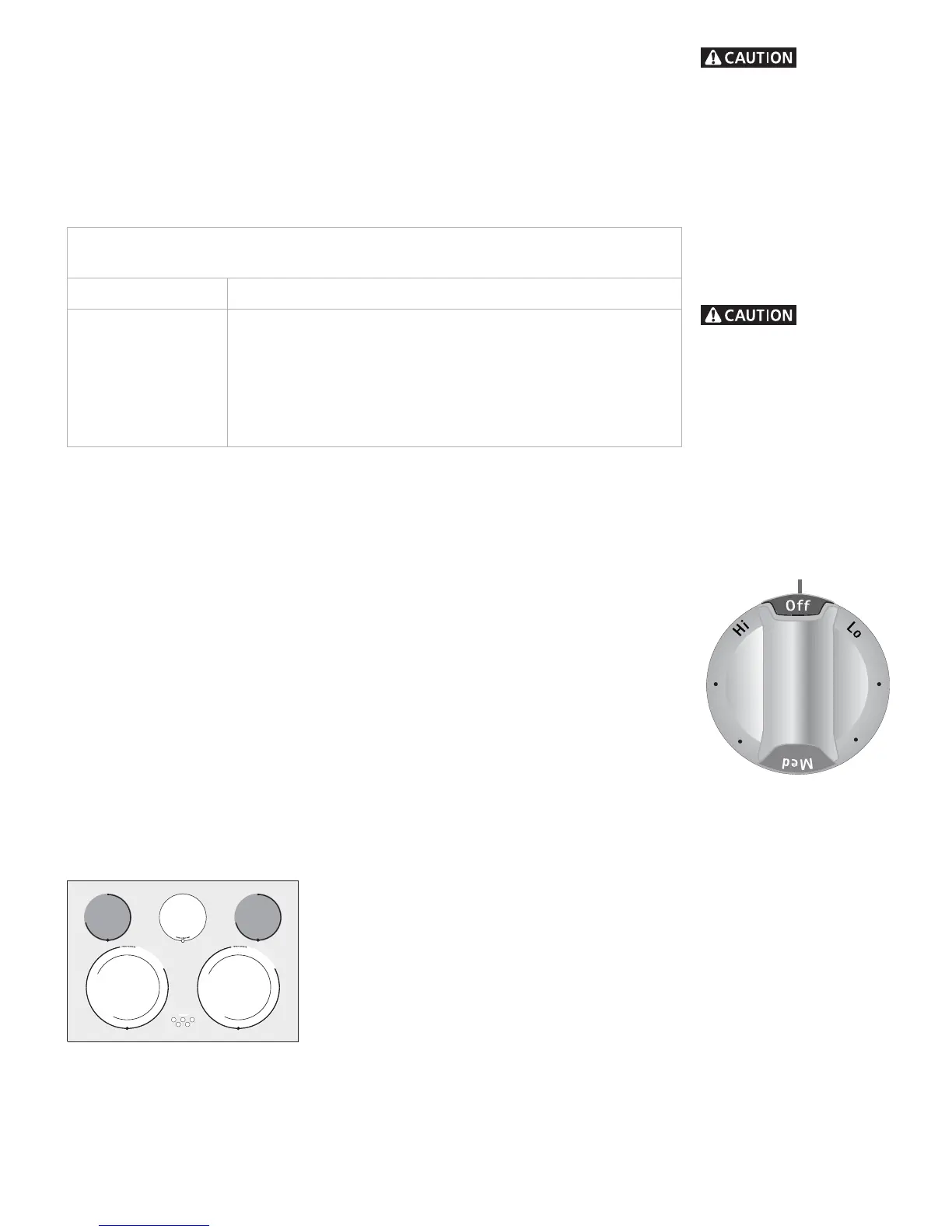 the cookware. Note: The Surface Indicator light will come on when the control knob