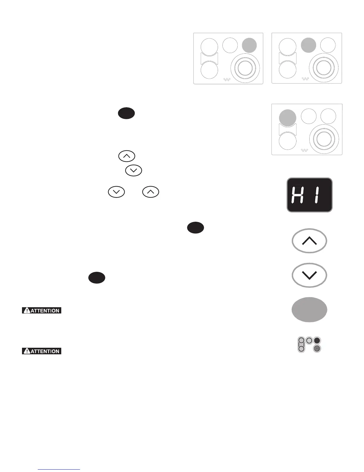 Note: Le témoin lumineux de surface chaude, situé sur la surface de cuisson, s’allume