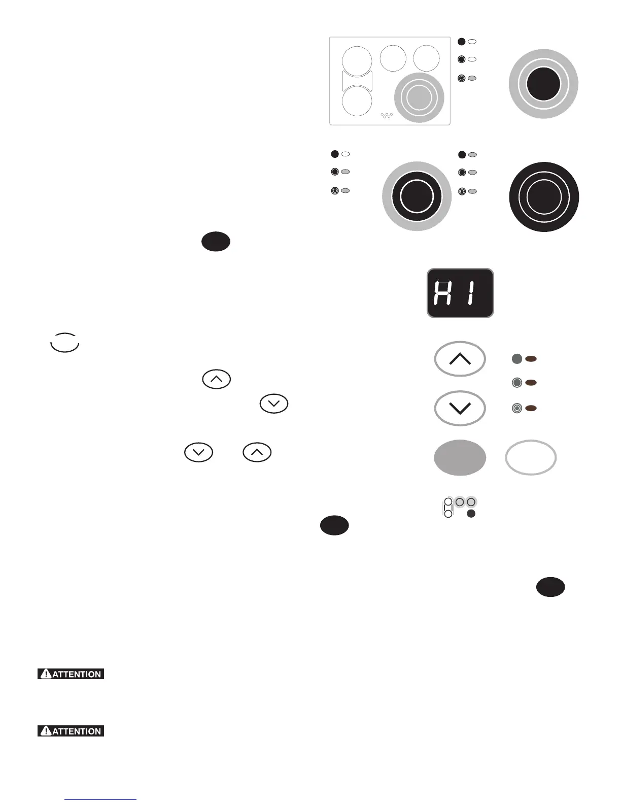 Note: Le témoin lumineux de surface chaude, situé sur la surface de cuisson, s’allume aussitôt que la touche
